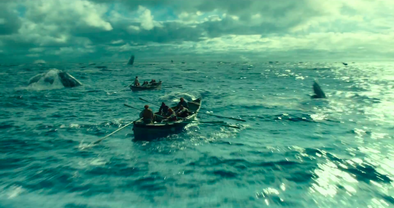 인물들을 살펴보자. 선장의 능력을 갖췄지만, 출신 성분 탓에 일등 항해사에 머물 수밖에 없는 오웬 체이스. 그는 좌절된 욕망을 충족하기 위해 고래를 향해 작살을 던진다. 그에게 고래는 기름이요, 돈이요, 명예다. 그리고 증조부 잘 만난 덕에 낙하산으로 꽂힌 선장 조지 폴라드. 그는 초보 선장으로서 가문 덕에 선장이 된 것이 아니라 충분한 능력도 있음을 증명하려고 한다. 그의 훌륭한 지휘 덕에 누구보다 많은 고래를 잡기를 바란다. 그에게 고래는 능력이요, 리더십이었다. 그 둘의 욕망이 타협한 지점에서 고래는 생명체가 아니었다. 오로지 그들의 욕망을 충족하기 위해 사냥해야 하는 목표물이었다. 그래서 흰 고래의 반격은 더욱 충격적인 일이었다. 그 반격으로 인해 자신도 생존을 위해 필사적인 상태가 되어 버린 순간, 오웬 체이스는 각성한다. 저 고래도 그저 살고자 하는 맹목적인 본능대로 행동한 것임을 깨닫는 순간, 고래와 자신을 똑같은 생명체로 인식하게 되는 것이다.