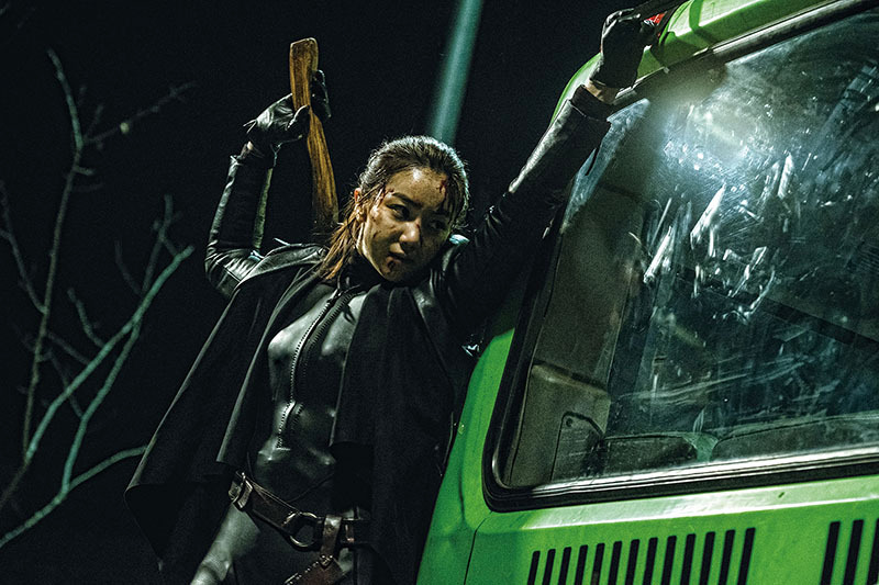 오토바이를 탄 채 단도와 장도를 활용하는 액션 시퀀스만 봐도 <악녀>는 충분히 매력적인 작품이다. 속도감 위에 펼쳐지는 스턴트는 무척 자연스러웠다. 그리고 오토바이의 질주와 쓰러져 튕겨지는 추격자의 충격, 칼날을 주고받는 인물들의 움직임을 고스란히 담아낸 촬영 기술이 놀라웠다. 엔딩부의 마을버스 추격 장면도 인상적이었다. 자동차 보닛에 앉아 핸들을 조정하며 마을버스를 뒤쫓는 숙희의 모습. 숙희의 집요함과 복수심이 강렬하게 느껴지는 장면이었다. 그렇게 쫓아가서 마을버스 후미에 도끼로 매달리는 장면은 흐름도 좋았고 아이디어도 빛났다.