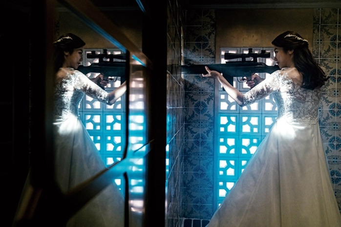 <악녀>는 <하드코어 헨리>의 전철을 밟지 않으려고 한 것 같다. 1인칭 시점의 화면에서 벗어나고 싶을 때쯤 시점의 변화를 준다. 적의 일격에 주인공이 거울에 부딪히는 장면에서 3인칭 시점으로 전환한다. 시야가 넓어지면서 시쳇말로 ‘날아다니는’ 숙희(김옥빈 분)의 액션이 물 흐르듯 펼쳐진다. 유려한 액션의 선이 절정의 순간에 다다르는 순간, 박살 나는 유리창에서 확장과 폭발의 에너지를 느끼게 된다. 경주마가 눈가리개를 풀고 달릴 때 이런 쾌감을 느끼지 않을까?