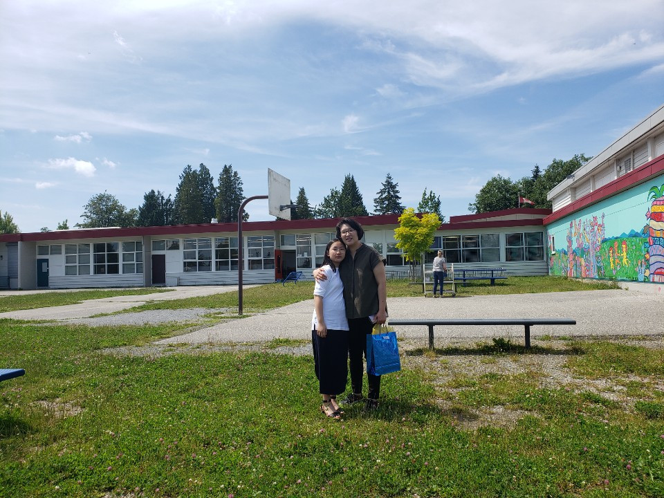 딸아이는 7학년 담임 선생님과 6학년 때 담임 선생님과 사진을 찍으며 거리두기 때문에 어정 쩡이 거리를 두고 서서 사진을 찍었답니다.