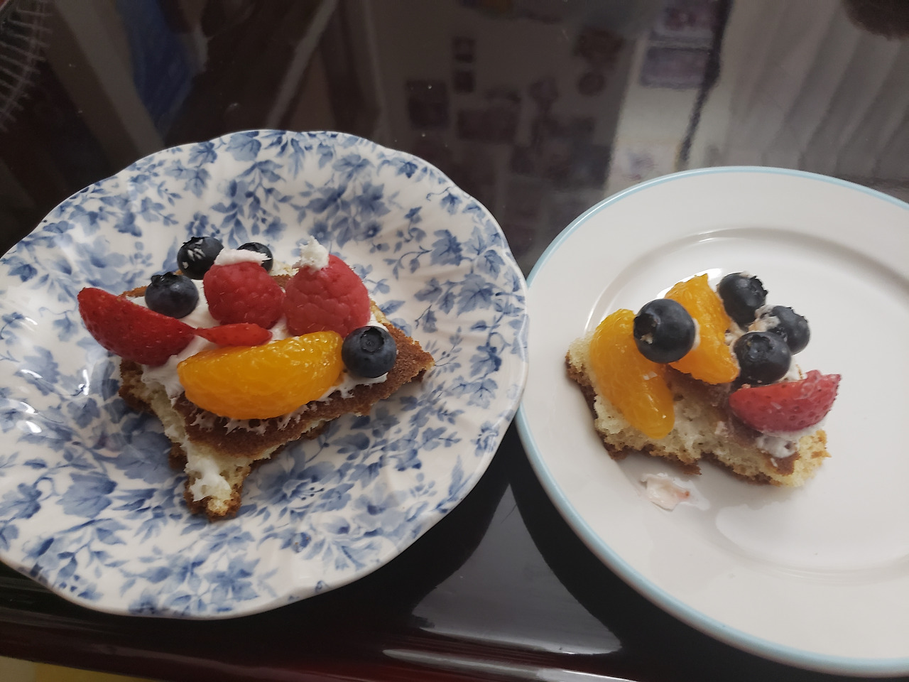 제대로 갖추어진 제빵 재료가 없음에도, 있는 재료로 열심히 크림을 발라 장식을 하더니 제법 그럴듯하게 케이크를 만들어 냈다.