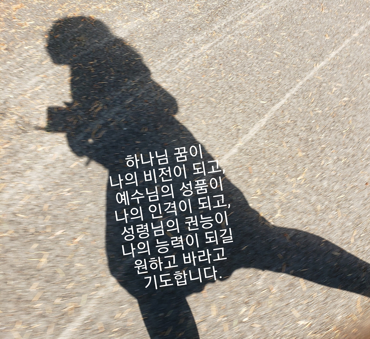 우연히 찍힌 큰 딸의 그림자가 참 예쁜 사진입니다. 이 찬양처럼 이 아이가 하나님의 비전을 가지고 예수님의 인격을 닮고 성령의 능력을 받아 성장하길 기도해봅니다.