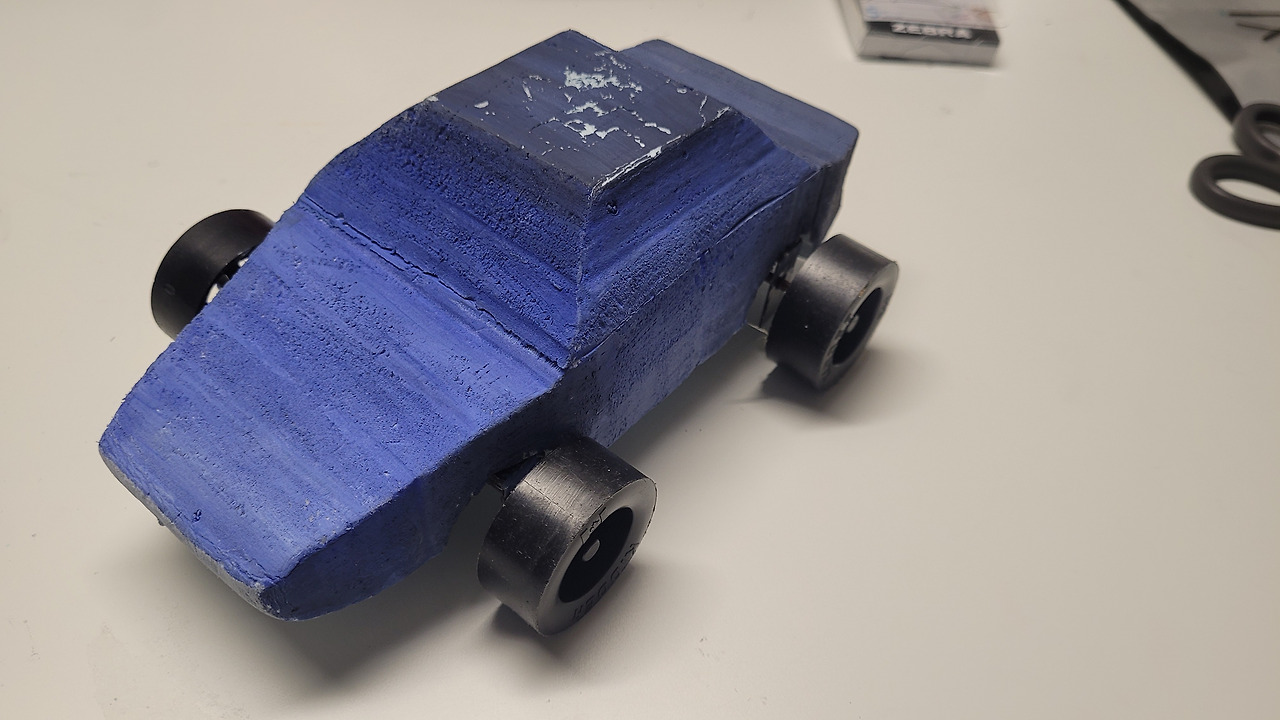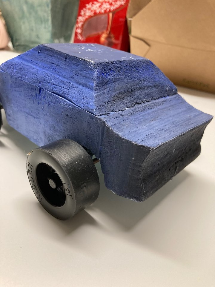 스티롬폼으로 차를 만들어 색을 칠했고, 나무를 직접 깍아서는 뚜껑있는 상자를 만들어왔단다.
