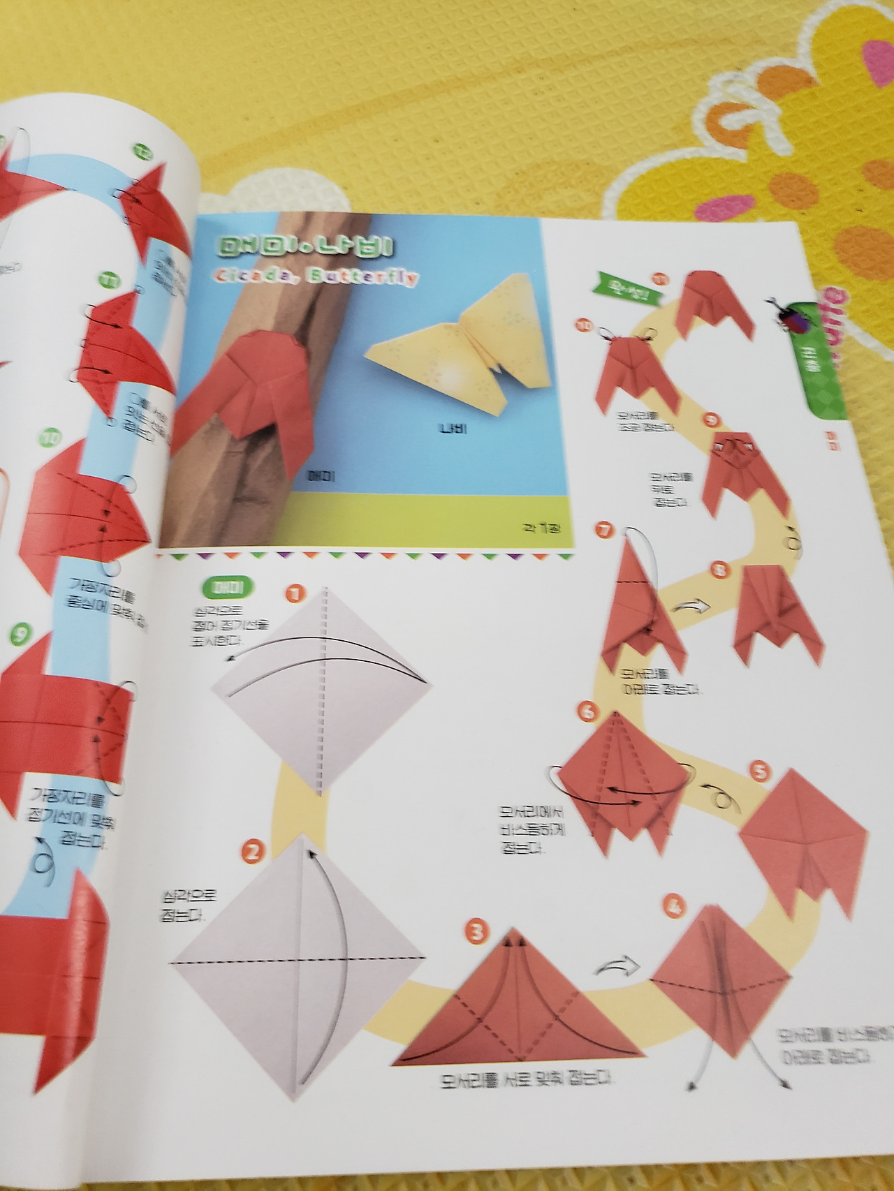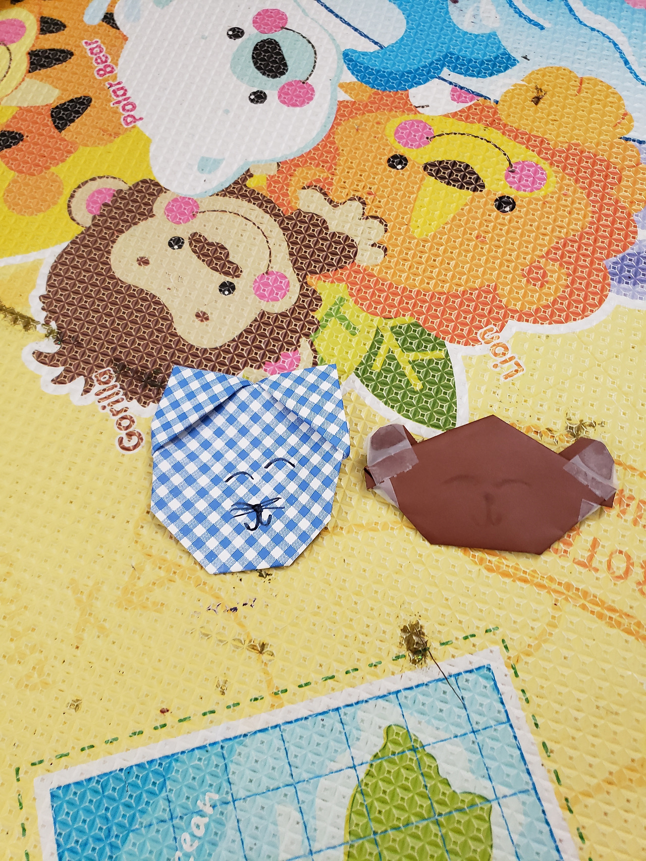 심심한 막내가 혼자서 책을 보며 종이접기를 시작했다. 만들어 준 매미는 사진을 잊어버리고 못 찍었다. 강아지와 곰돌이를 만들어 엄마 선물이라며 챙겨주었다.