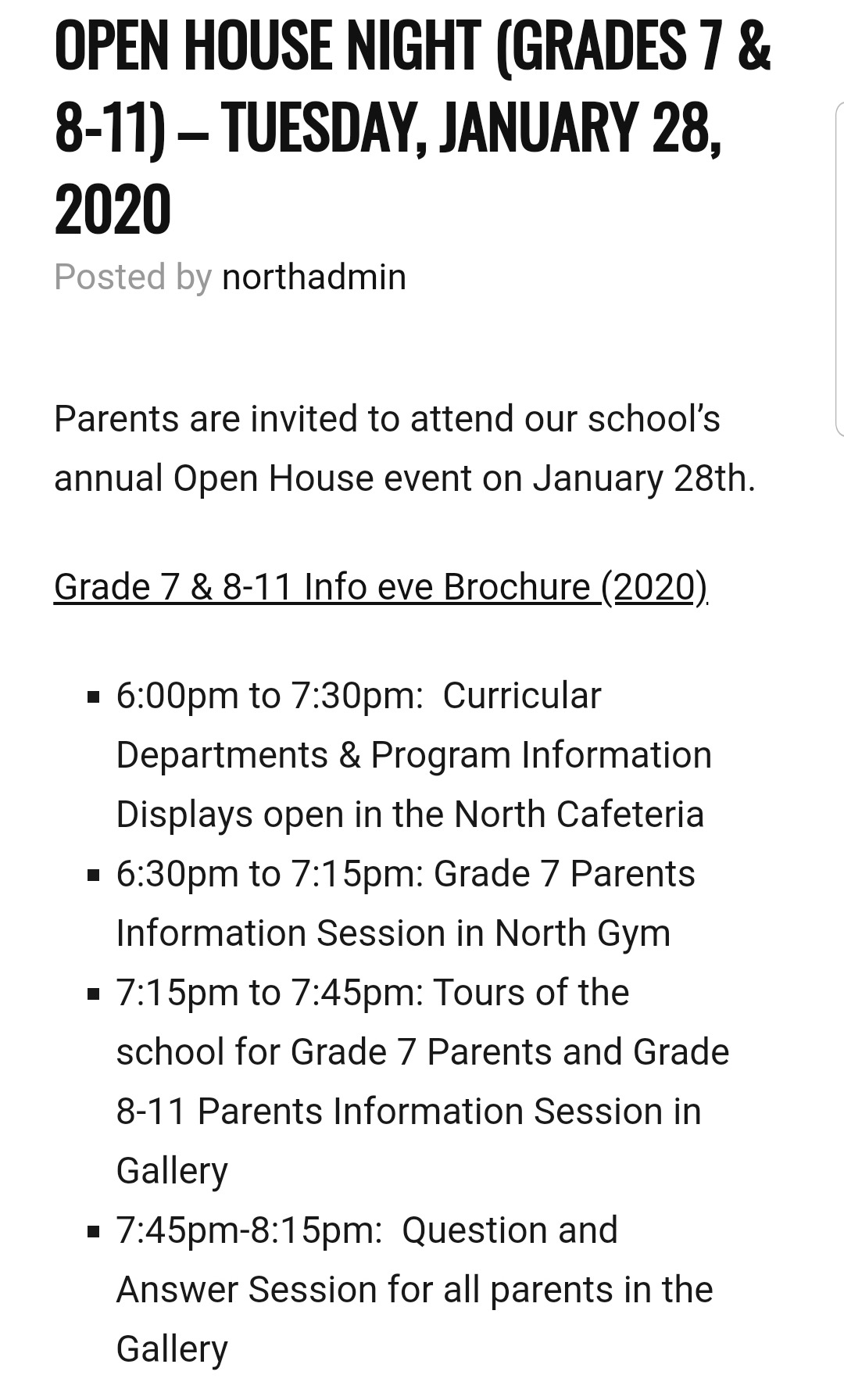 Secondary school open house