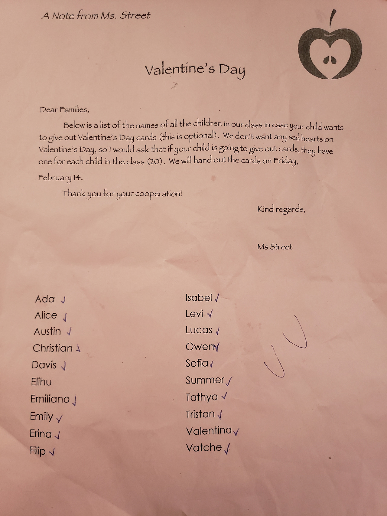 막내가 받아 온 가정통신문에는 반 친구들의 이름까지 모두 적혀있지요. 각 반 친구들을 빼먹지 않도록 반 학생들의 이름을 적어놓은 리스트를 함께 보내줍니다. 아직 어린아이들은 친구들의 이름 철자를 다 기억하지 못하는 경우도 있기 때문에 제법 도움이 되는 선생님의 배려입니다.