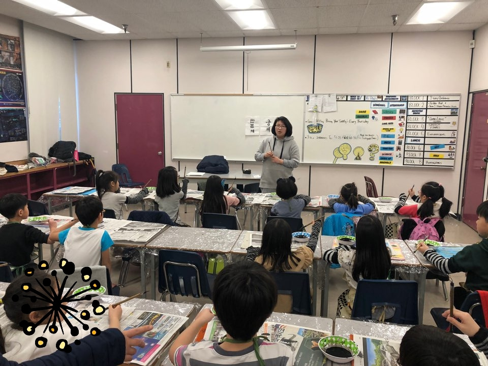유년부(1학년~3학년) 한글학교 특별수업으로 붓글씨 쓰기가 있었습니다.