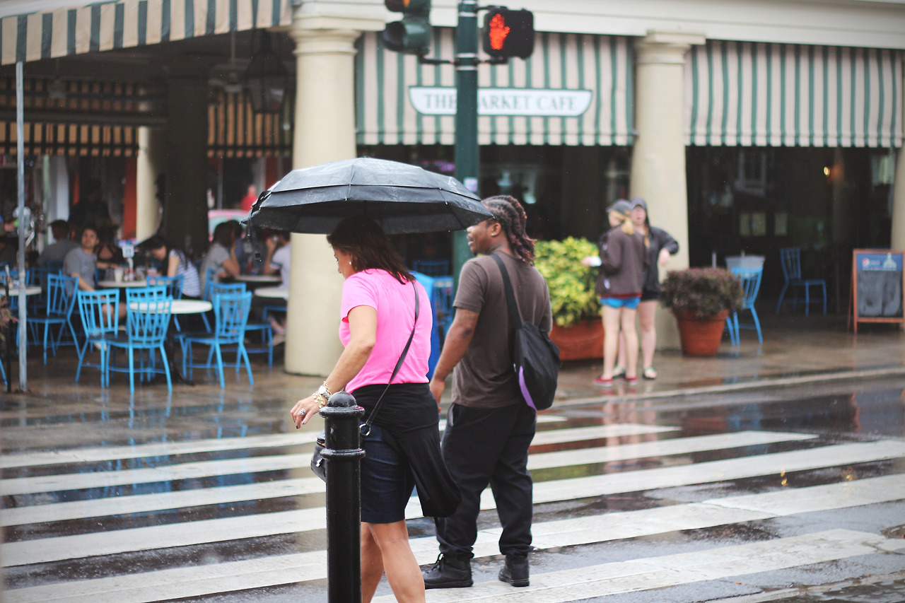 촉촉하게 비 내리는 뉴올리언즈 프렌치 쿼터, 우산을 쓴 아주머니도, 비를 맞는 청년도 모두가 행복한 그곳.