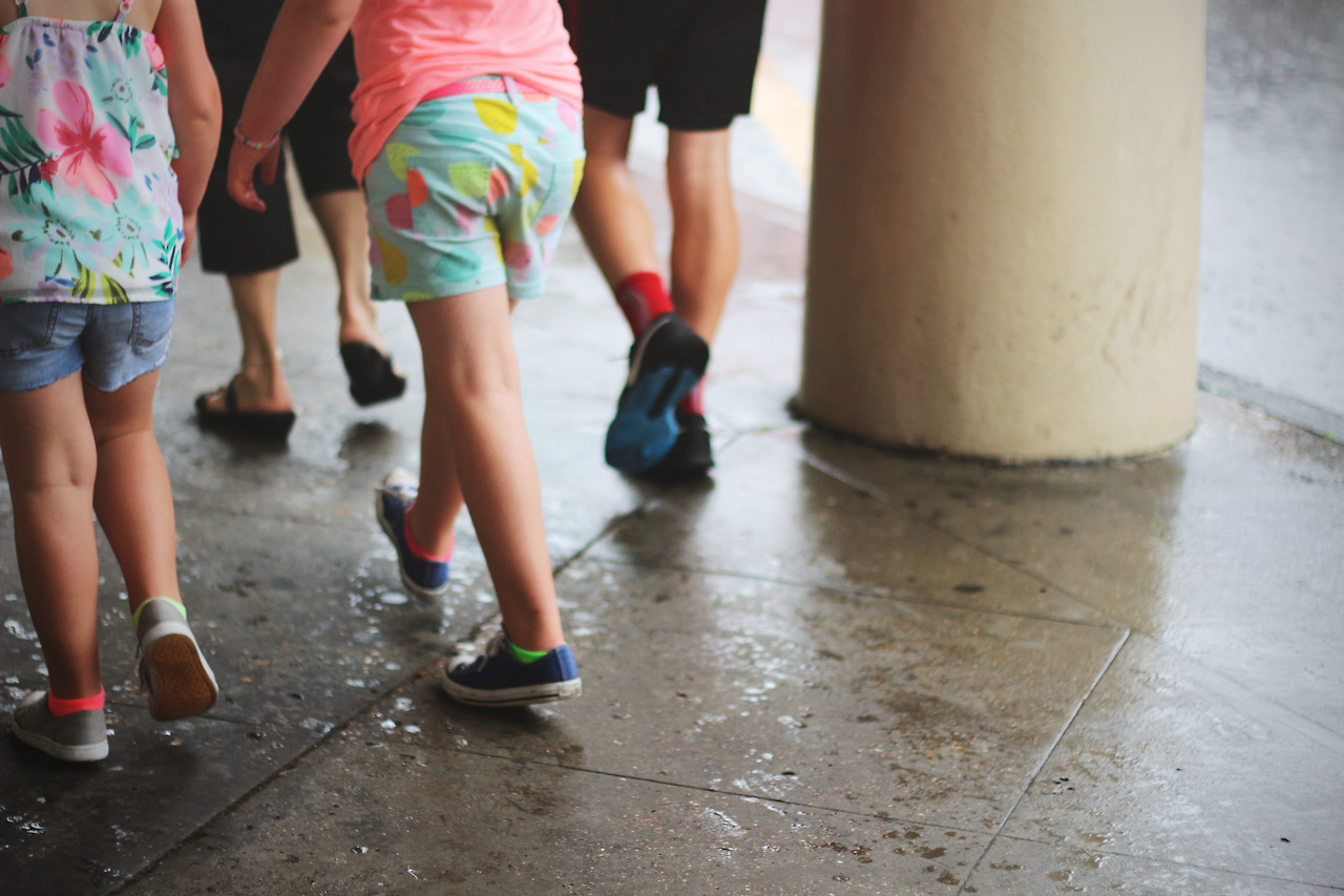비를 피해 분주히 걸어가는 아이들. 천천히 걸어가도 돼. 금방 그칠 소나기거든.