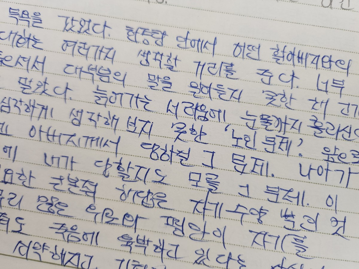 선생님이든 누구든 나의 글씨 쓰는 방법에 관해 조금 더 세심하게 신경 써주었으면 좋았을 것을...