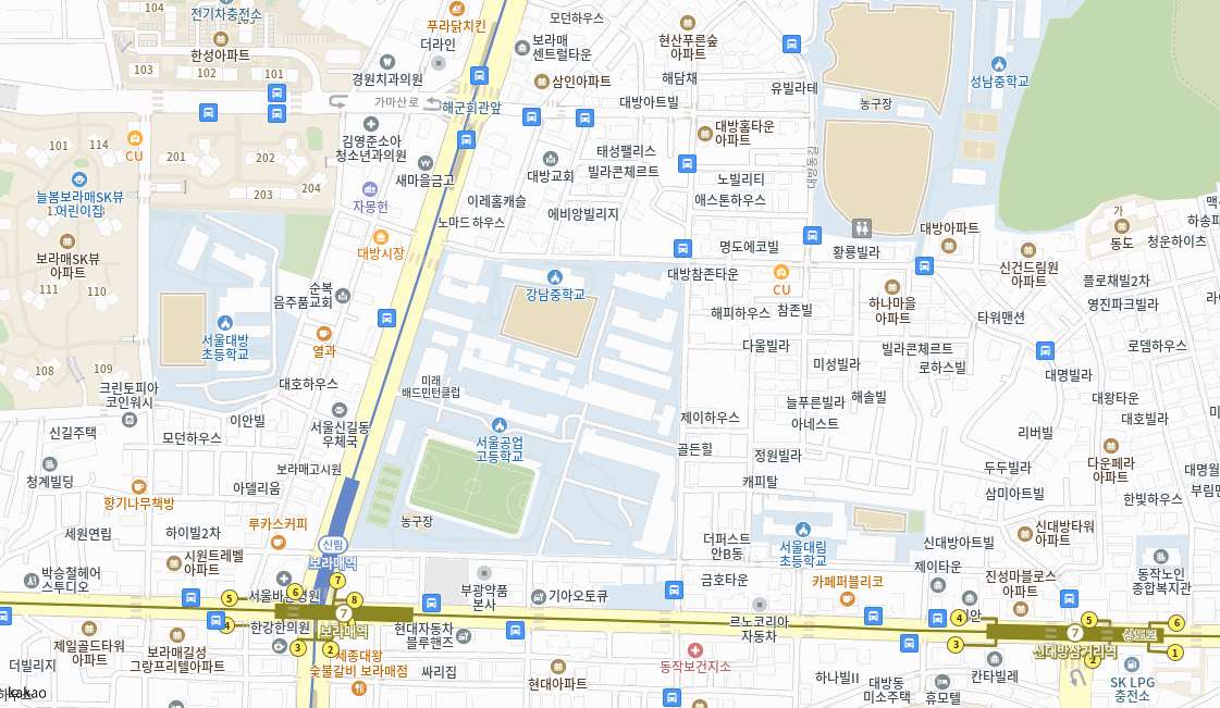 강남중학교 옆에 있는 동네에는 대방교회가 있고, 우리 집은 대방교회에서 남쪽으로 네 번째 집에 있었다. 내가 살았던 집은 사라졌고 동네 건물들도 모두 바뀌었지만, 다행히 대방교회와 강남중학교는 그 위치에 그대로 있고 도로 형태도 그대로 남아 있어서 여전히 옛 추억을 되살릴 흔적이 남아 있다. 옛 집들과 거리가 모두 사라진 채 그 위에 새로운 아파트 단지만 남은 동네에 비해 무척 다행이라고 생각한다. 나는 그 동네에서 네다섯 살 무렵부터 고등학교 2학년 초까지 살았다.