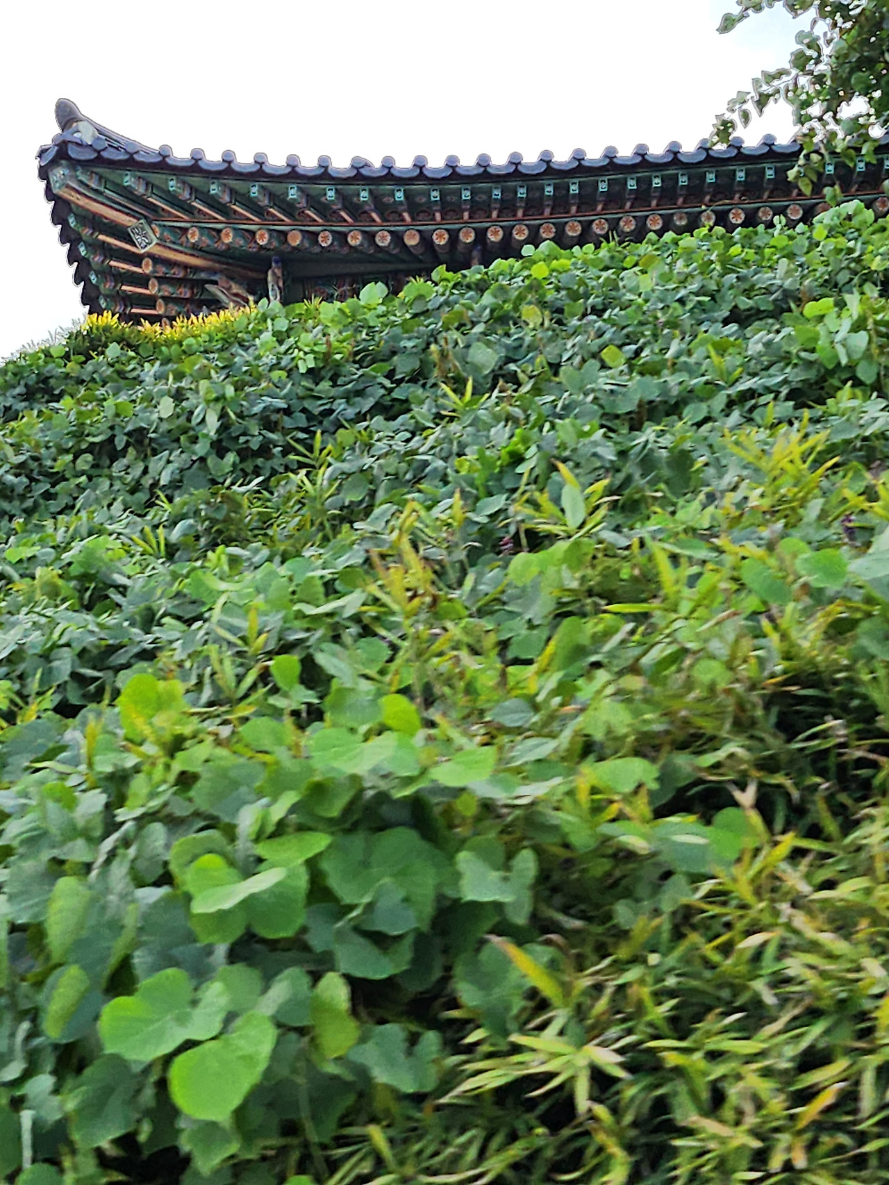 그러나 그 짧은 순간에 나는 차창 밖으로 언덕 위에 언뜻 경포대의 처마를 본 듯도 했다. 나는 혼자서 긴가민가 하면서 과연 달리는 차 안에서 경포대가 보였을까, 하는 의문이 들기는 했다. 그러나 확인할 방법은 없었다. 다만 달리는 차 안에서 찍은 사진은 이렇게 나왔다. 나의 놀라운 집중력으로!
