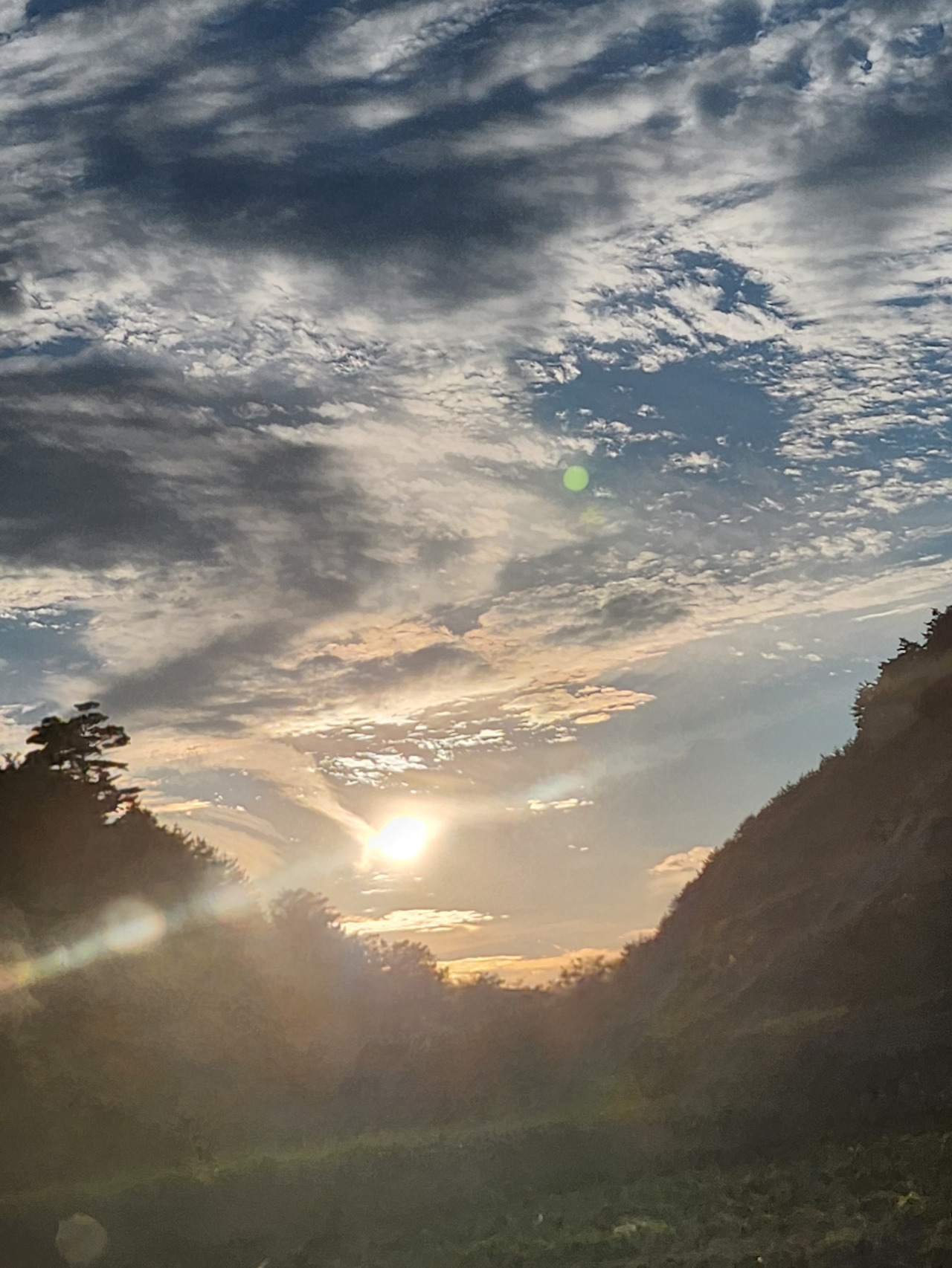 서울로 가는 차도에서 보니 주변에 있는 산들 위로 점차 노을이 지고 있었다. 먼 산 위에 걸린 구름은 붉은빛으로 물들고 있었고, 힘을 잃고 약해진 햇살은 먼 하늘부터 조금씩 잿빛으로 변하고 있었다.