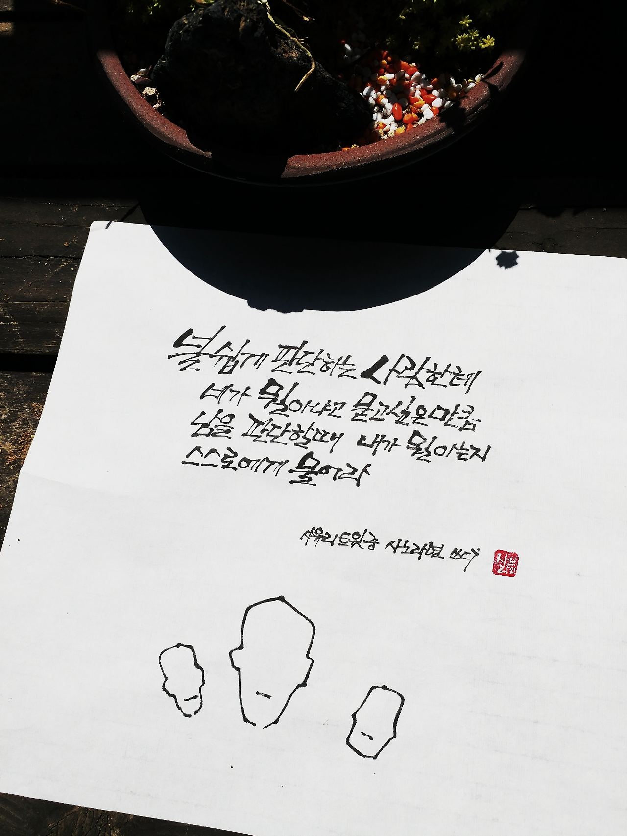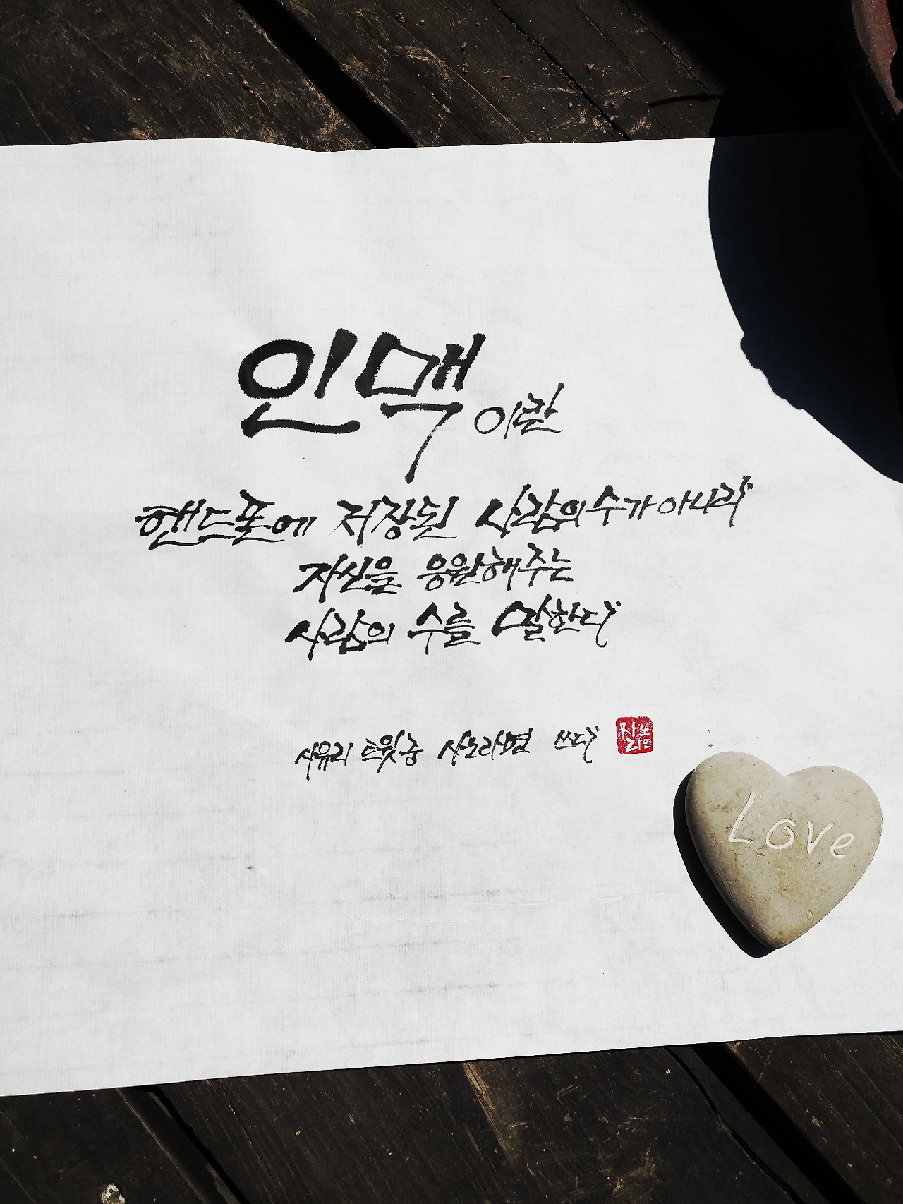 사노라면의 붓끝에 시를 묻혀 캘리한조각