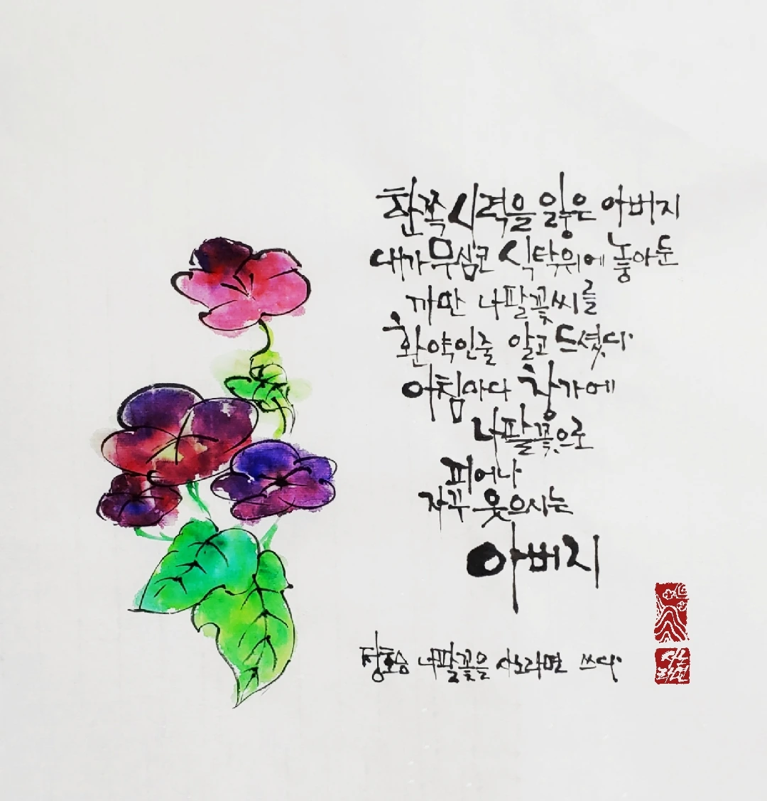 사노라면의 붓끝에 시를 묻혀 캘리 한 조각