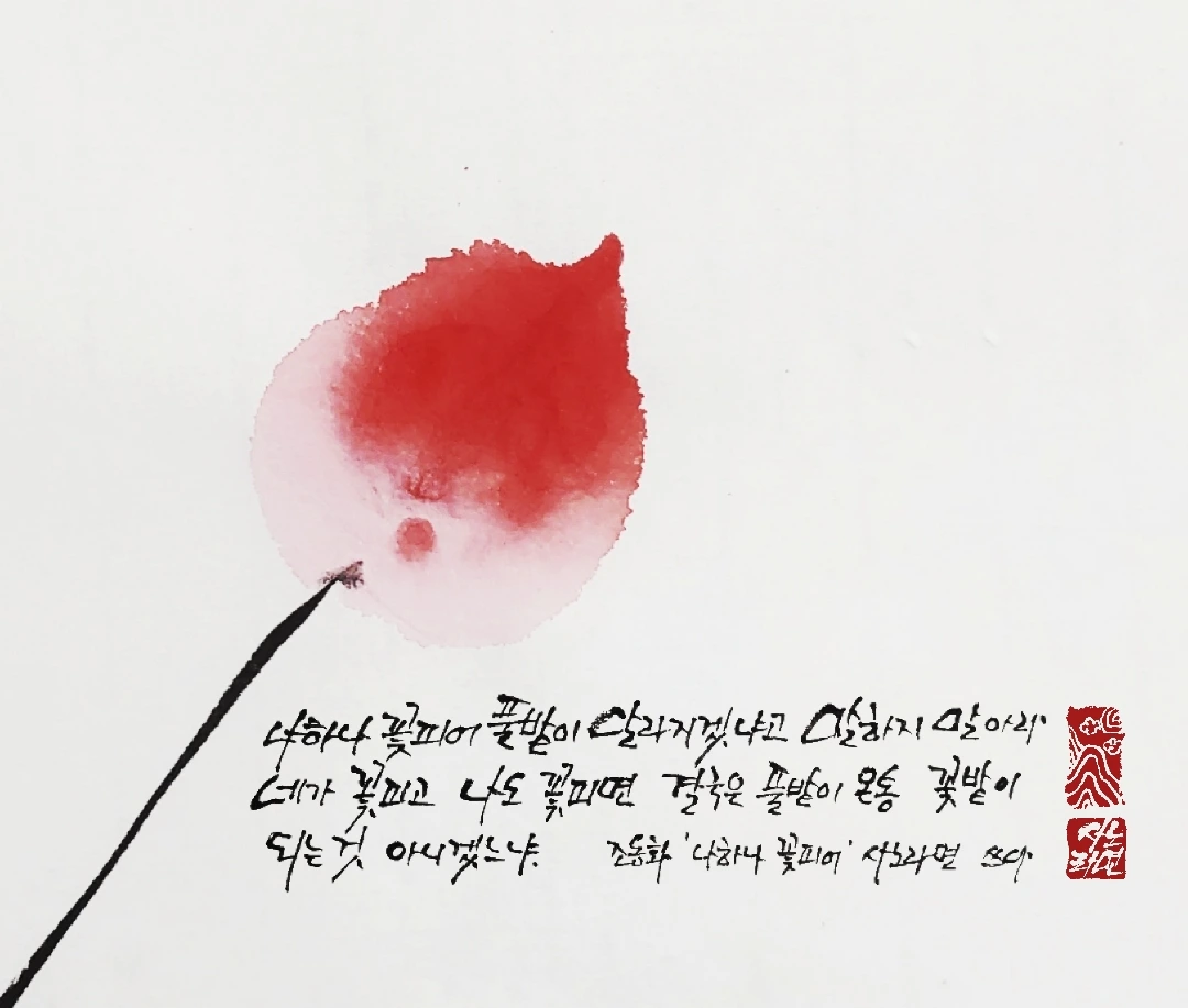 사노라면의 붓끝에 시를 묻혀 캘리 한 조각