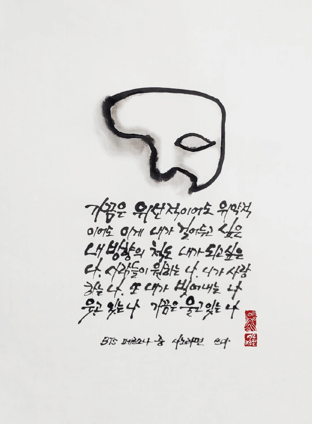 어쩌면 우리 스스로도 그런 다양한 모습을 이중적인 모습이라 치부하면서 감추고 살고 있었는지도 모릅니다. 하지만 그럴 필요 없더라고요. 누구나 여러 모습이 있고, 그런 다양함이 전부 다 나의 모습이고, 나만 그런 것이 아니고 알고 보니 너나 나나 우리 모두가 다 그런 모습이었으니 말이지요. 이젠 자신 있게 우리의 페르소나를 이야기하자고 BTS도 노래합니다. 위선적이거나, 위악적이거나, 내가 만들었거나, 남이 만들었거나, 웃는 나, 울고 있는 나, 그 모든 게 나의 모습이라 말이지요.