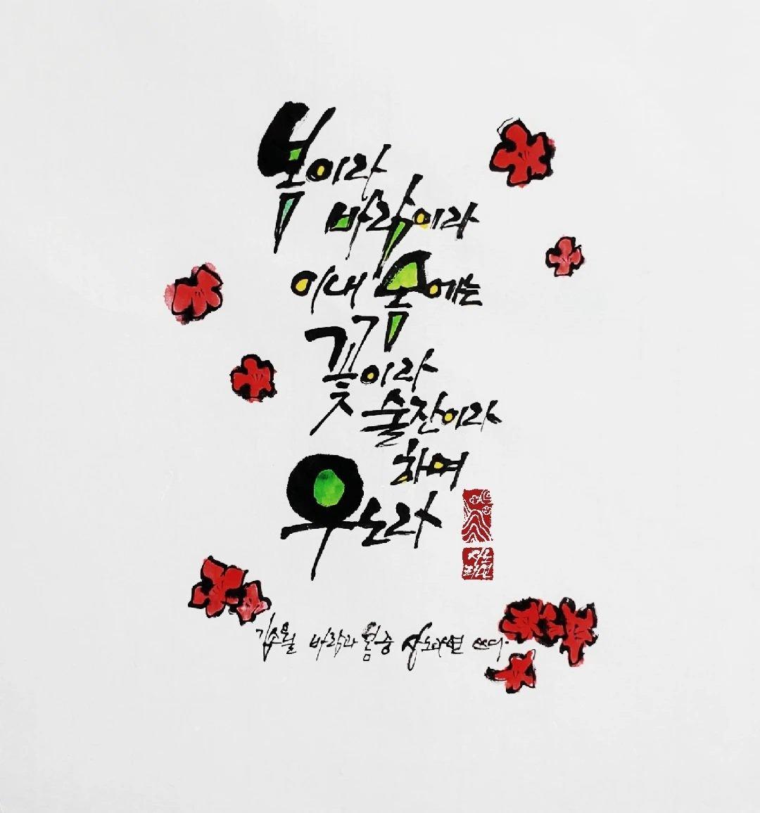 사노라면의 붓끝에 시를 묻혀 캘리 한 조각