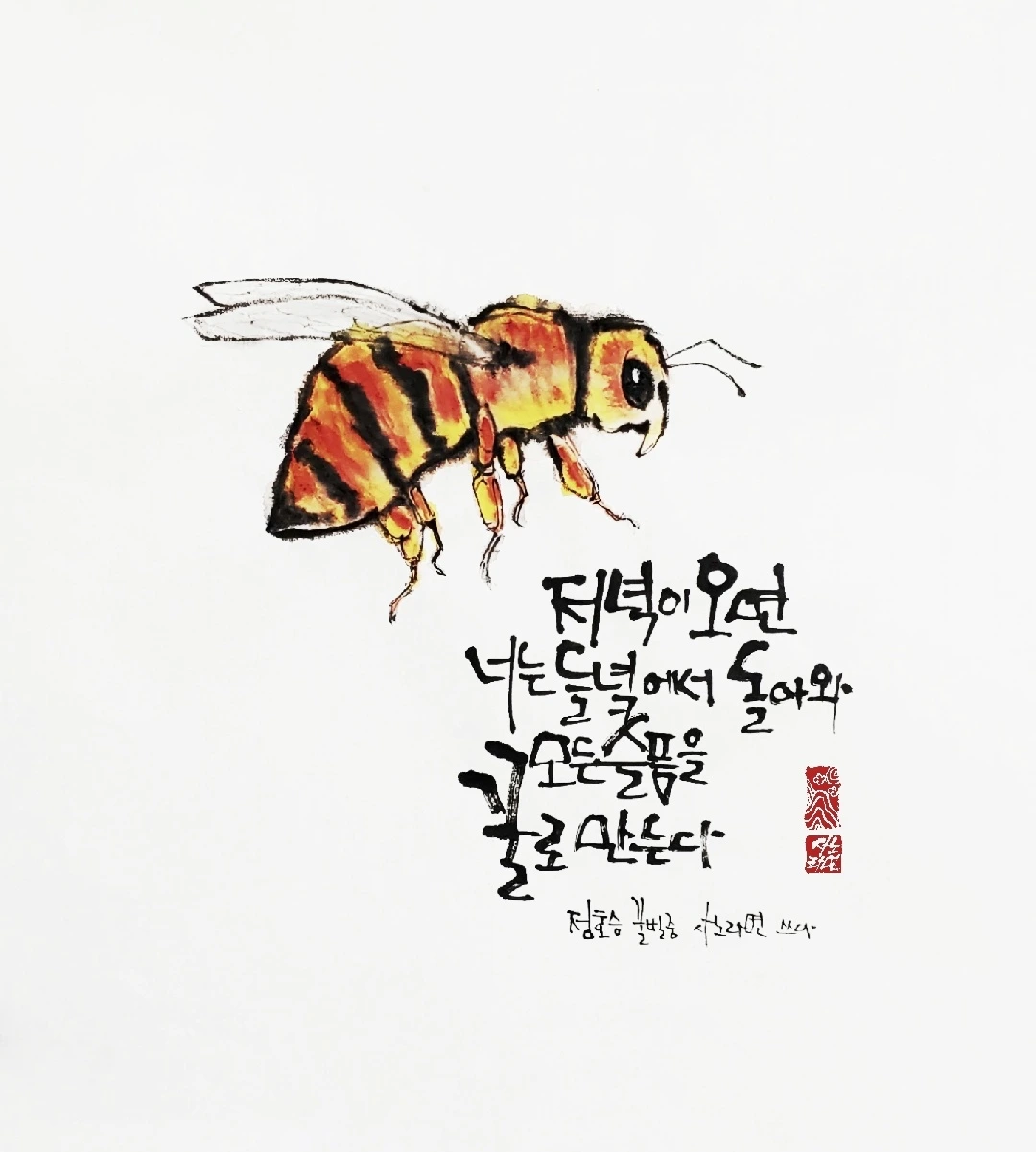 꿀벌들의 사는 모습을 생각하며, 그 꿀벌과 같이하는 손길을 생각하며, 정호승 시인의 꿀벌 한 구절을 그려봅니다.