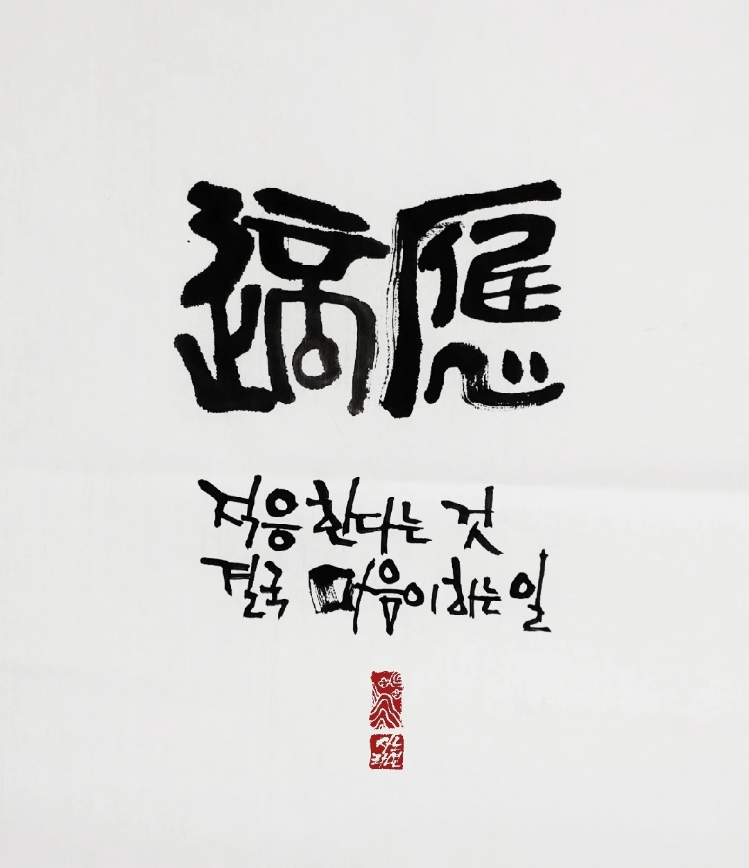 이사를 하면서 살면서 쌓은 짐들은 반 정도씩 털어냅니다. 그럼에도 짐들은 여전히 쌓이는 게 미스터리 한 우리네 살림이지요. 마음도 그럴 겁니다. 부지런히 털어내고 왔는데, 부지런히 비워내고 왔는데, 그 빈자리엔 어느새 다른 마음들이 잽싸게 들어앉습니다. 물리적인 이사는 끝났지만, 마음의 이사가 남았습니다. 동네 텃세를 부리며 마음이 먼저 출렁입니다. 이제 이 나이엔 그 심란함도 천천히 가라앉겠지요. 이제 이 나이엔 그 어수선함도 천천히 적응되겠지요. 급할 건 없지요. 서두를 건 없지요. 잠시 쉬어가라 하루 종일 비까지 내려줍니다. 짐 정리하느라 뻐근해진 허리를 토닥이며, 빗줄기의 찬 바람을 느껴봅니다. 대충 자리 잡은 작업실의 창문 앞 소나무가 맘에 듭니다. 낮엔 새까지 날아와서 지저귀더군요. 적응 適應 한 글자 그려보니 결국은 마음입니다 결국은 마음 심心이 받쳐줍니다 그렇게 또 하루 적응해보는 오늘입니다 그렇게 나이테 하나 새긴 오늘입니다.