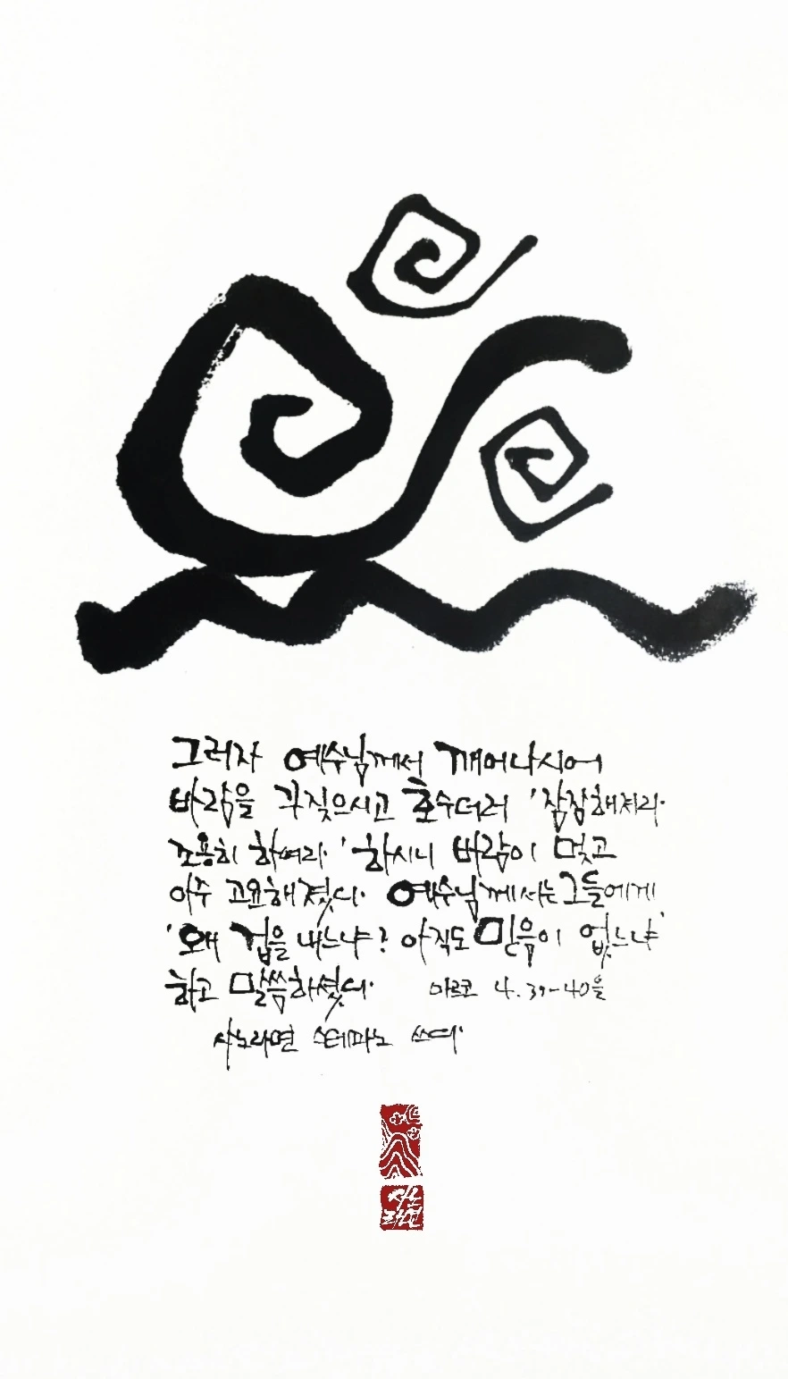 “잠잠해져라. 조용히 하여라!” 하시니 바람이 멎고 아주 고요해졌다.