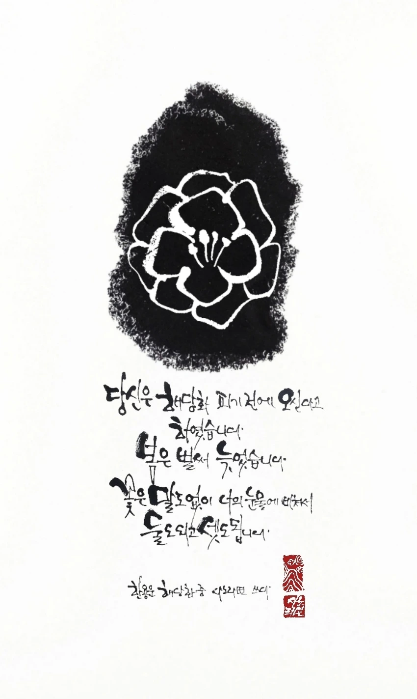사노라면 의 붓끝에 시를 묻혀 캘리 한 조각