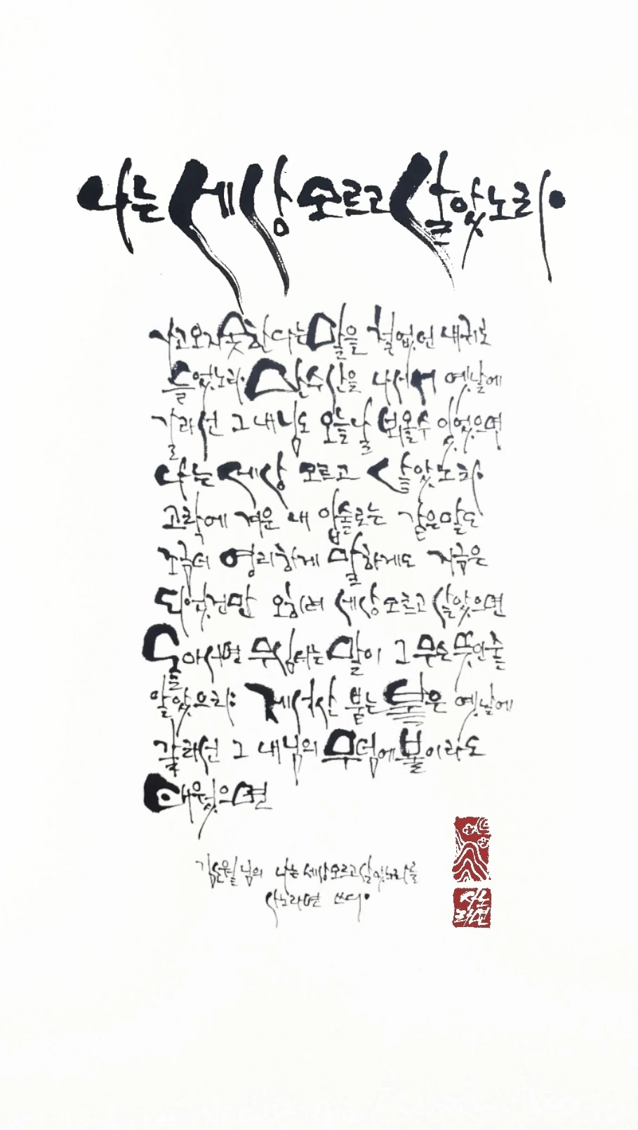 사노라면의 붓끝에 시를묻혀 캘리 한 조각