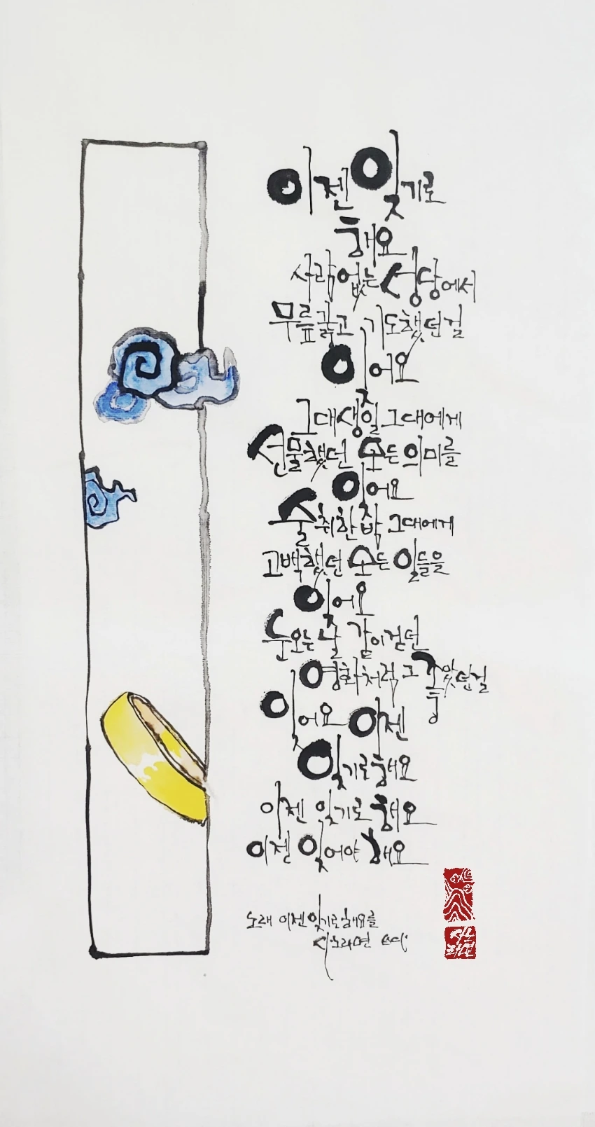 사노라면의 붓끝에 시를 묻혀 캘리 한 조각