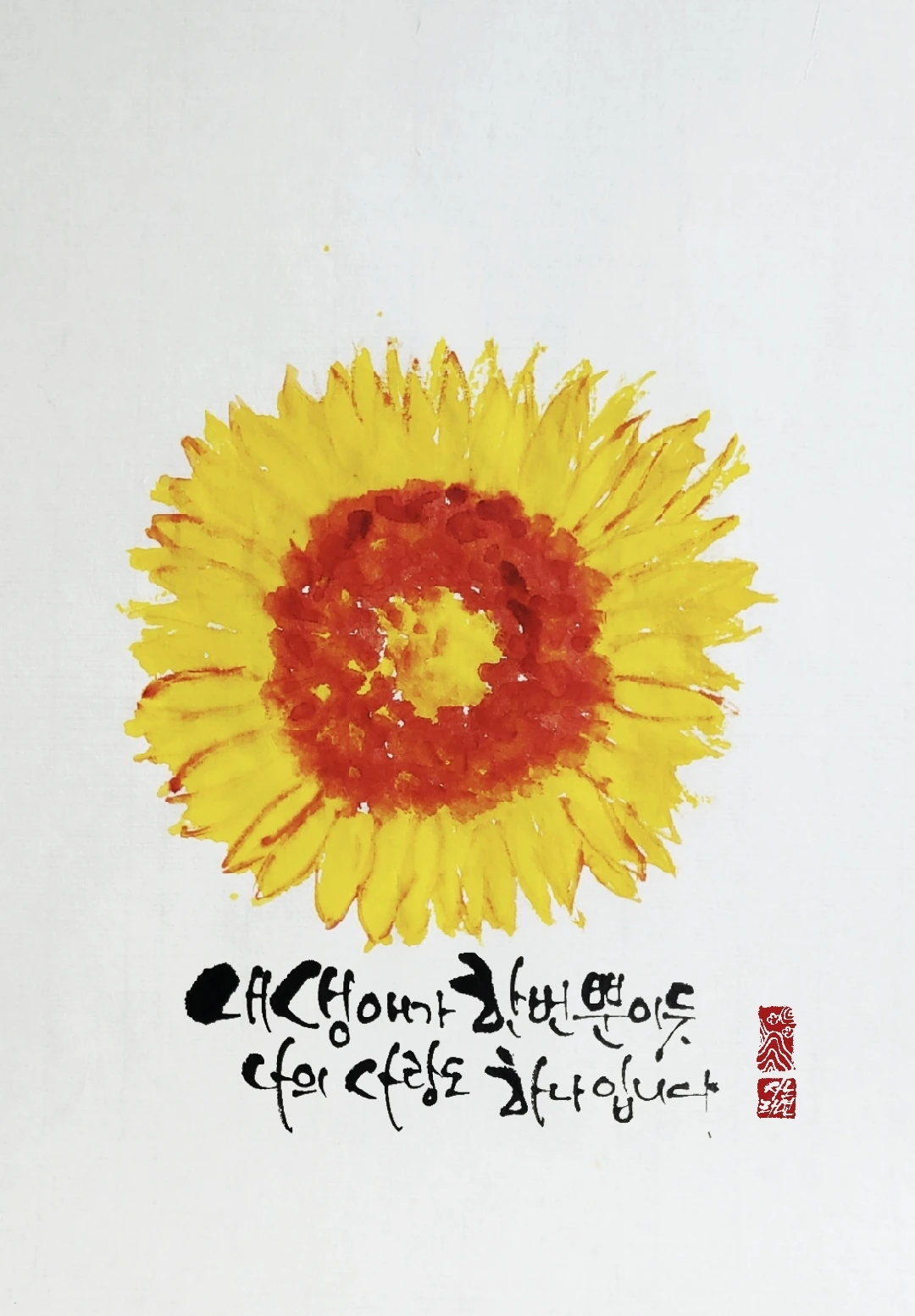 태양이 이리 뜨거운 날에 문득 해바라기가 생각나 붓끝에 적셔봅니다.