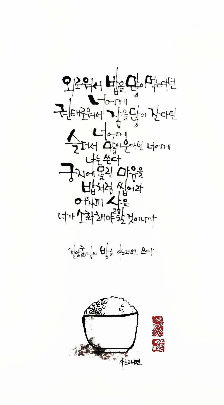 사노라면의 붓끝에 시를 묻혀 캘리 한 조각