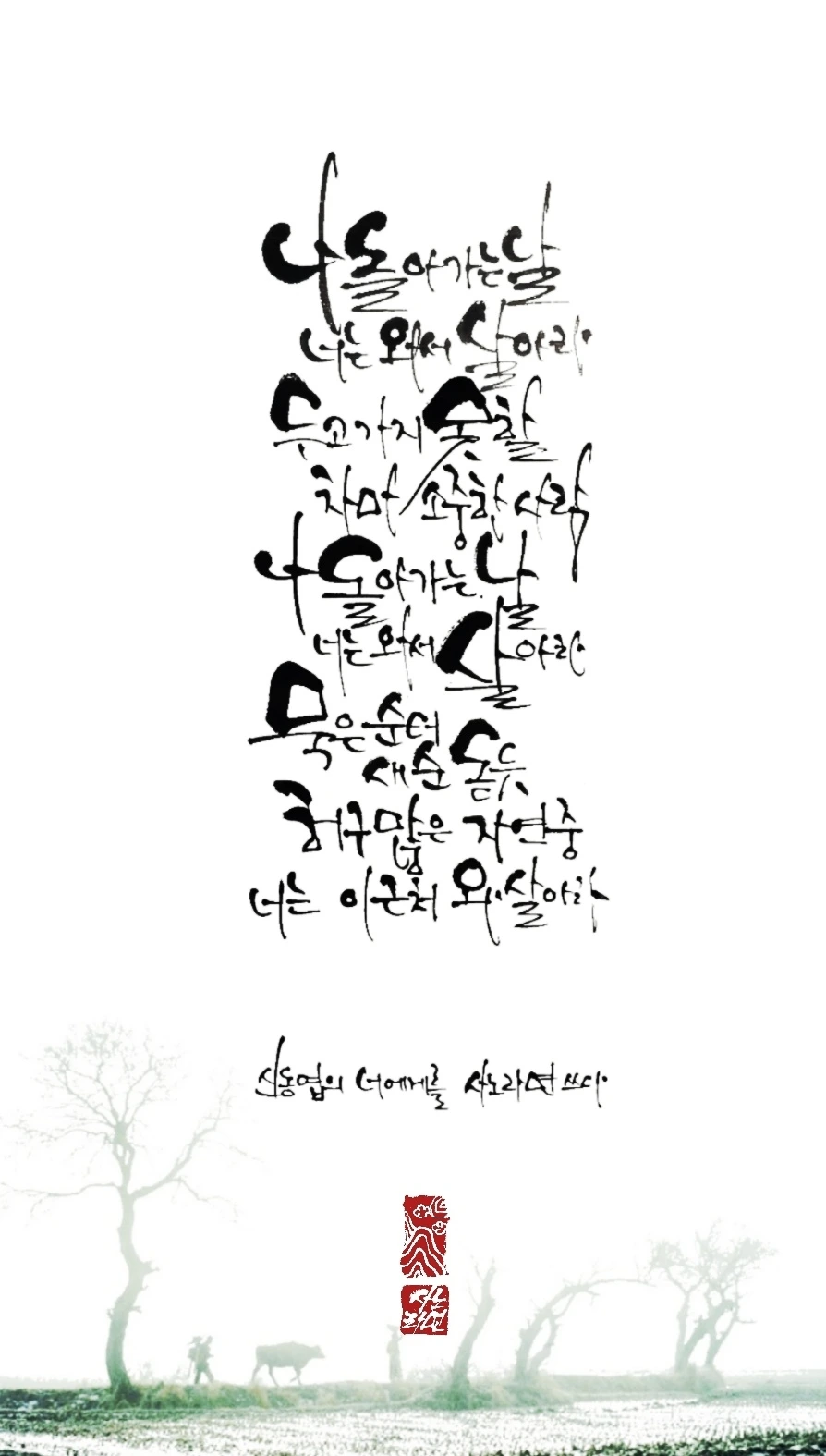 사노라면의 붓끝에 시를 묻혀 캘리 한 조각