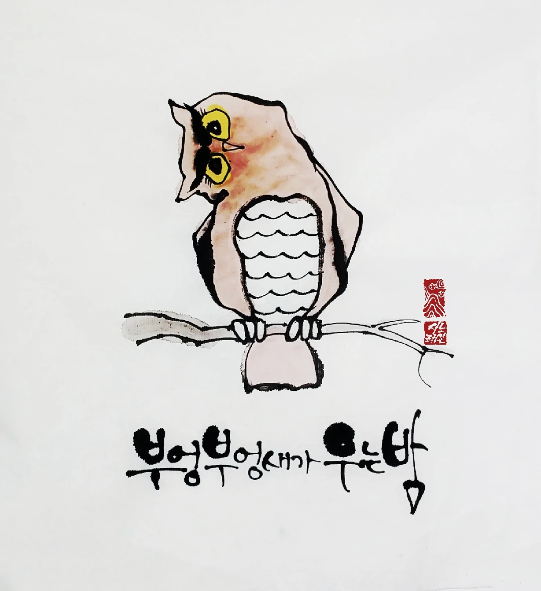 겨울밤 같은 오후, 문득 떠오른 동요 '겨울밤'을 흥얼대며 부엉이 한 마리 붓 끝에 얹어봅니다.