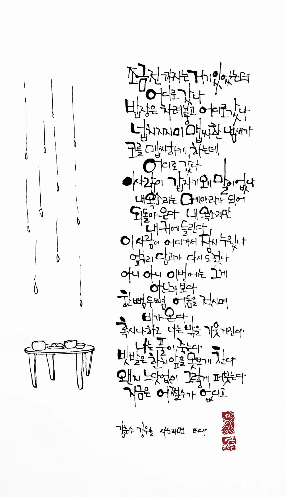 사노라면의 붓끝에 시를 묻혀 캘리 한 조각