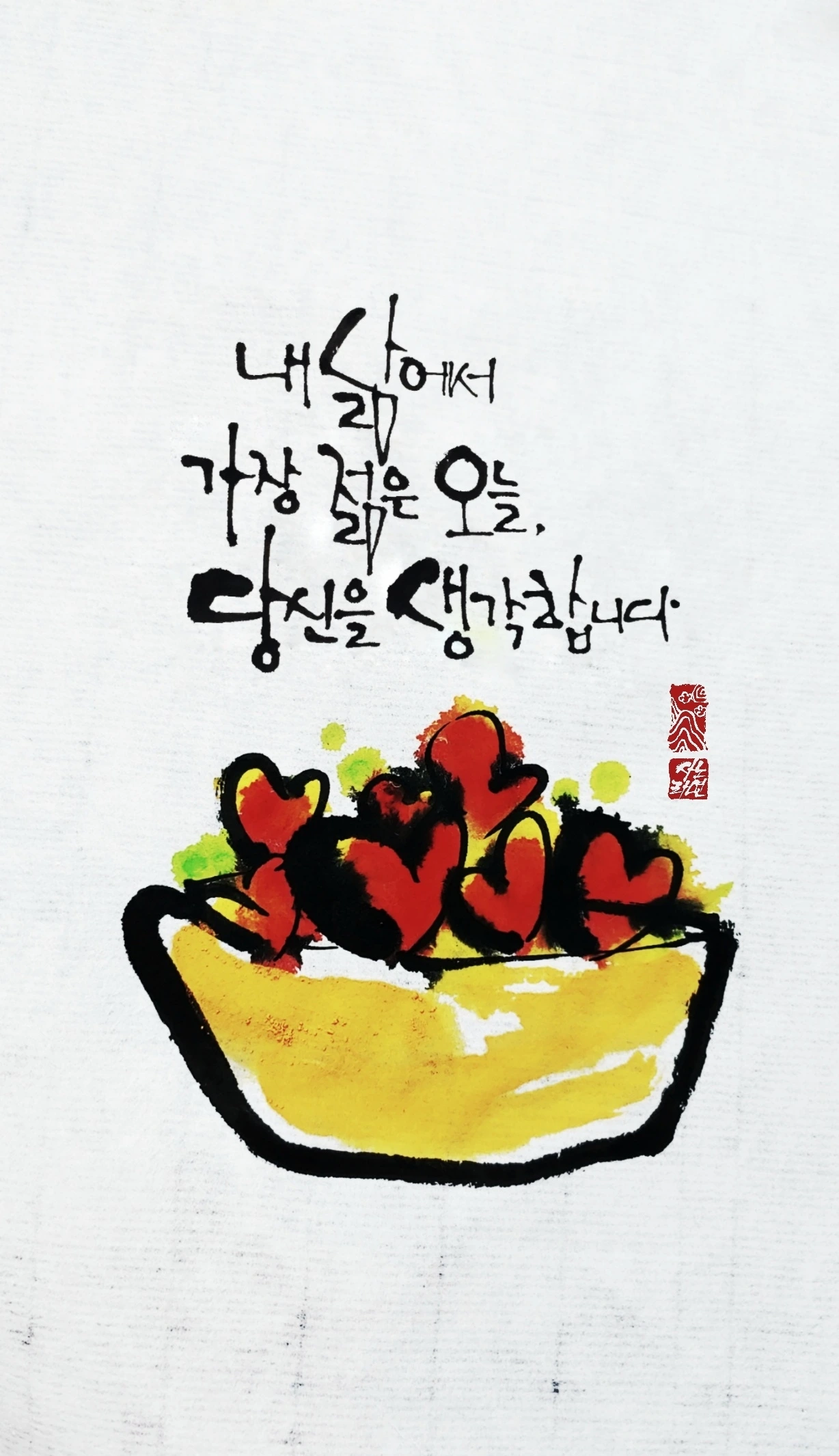 사노라면의 붓끝에 시를 묻혀 캘리 한 조각
