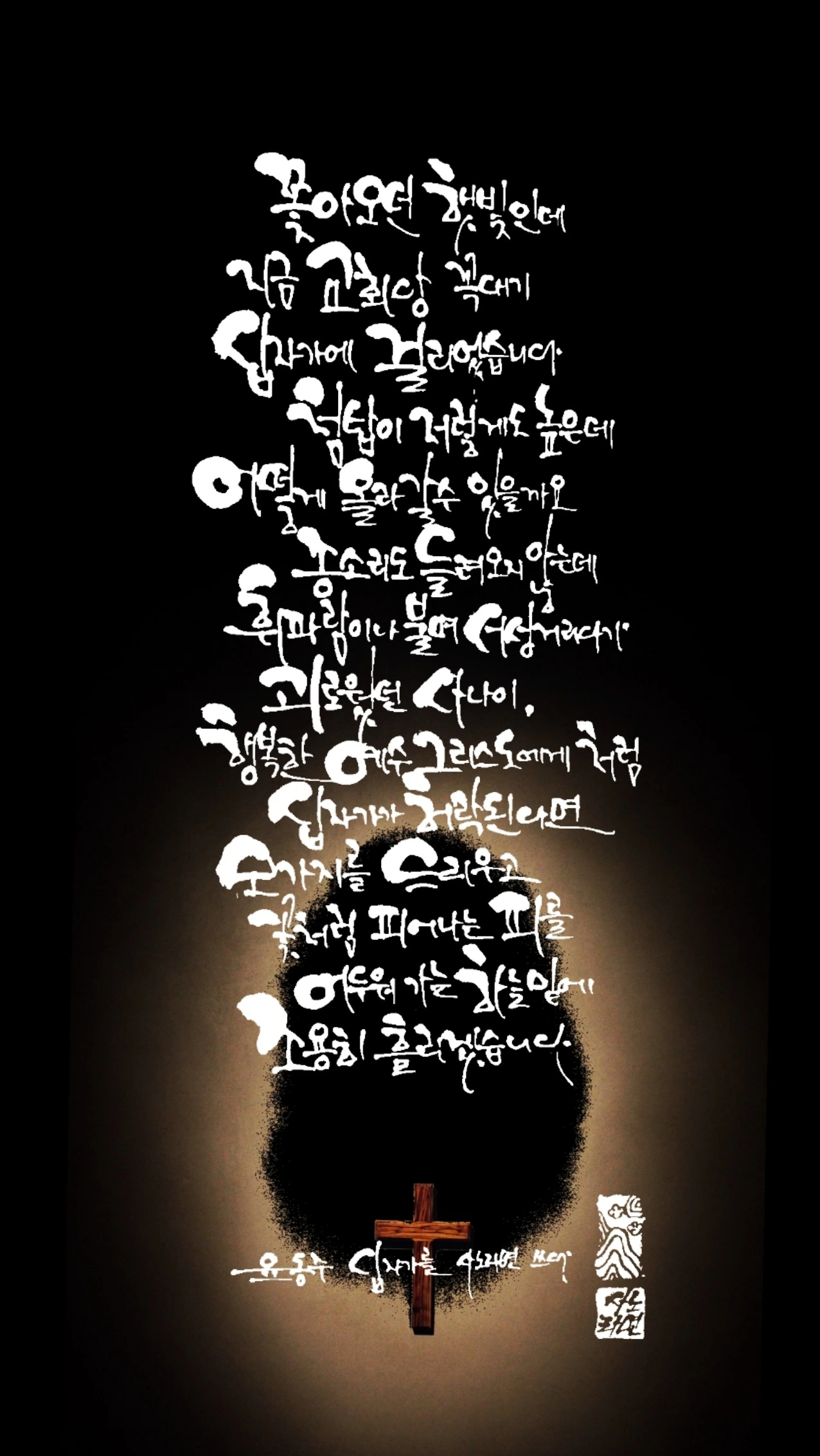 윤동주 시인의 '십자가'라는 시가 생각나, 시집을 뒤적거려 붓 끝에 묻혀 봅니다.