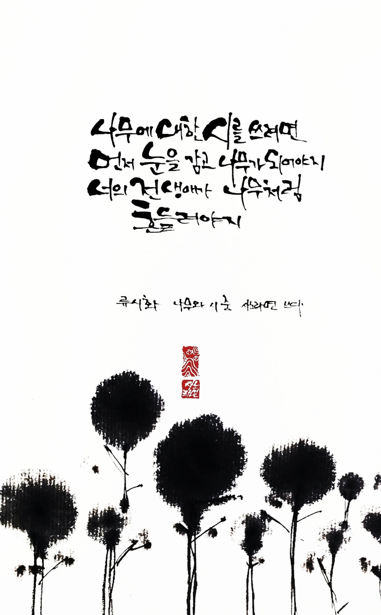 사노라면의 붓끝에 시를 묻혀 캘리 한 조각
