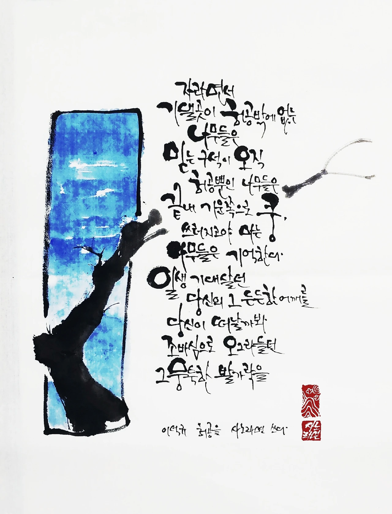 사노라면의 붓끝에 시를 묻혀 캘리 한 조각