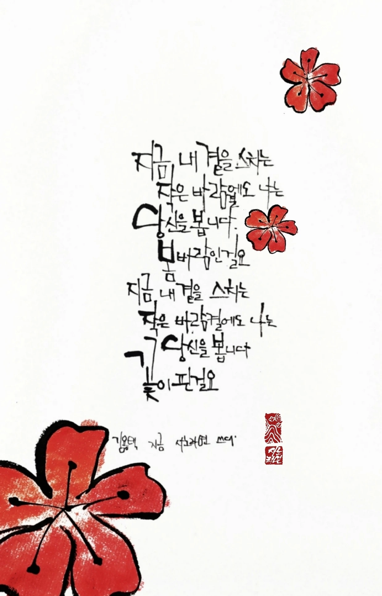 사노라면의 붓끝에 시를 묻혀 캘리 한 조각