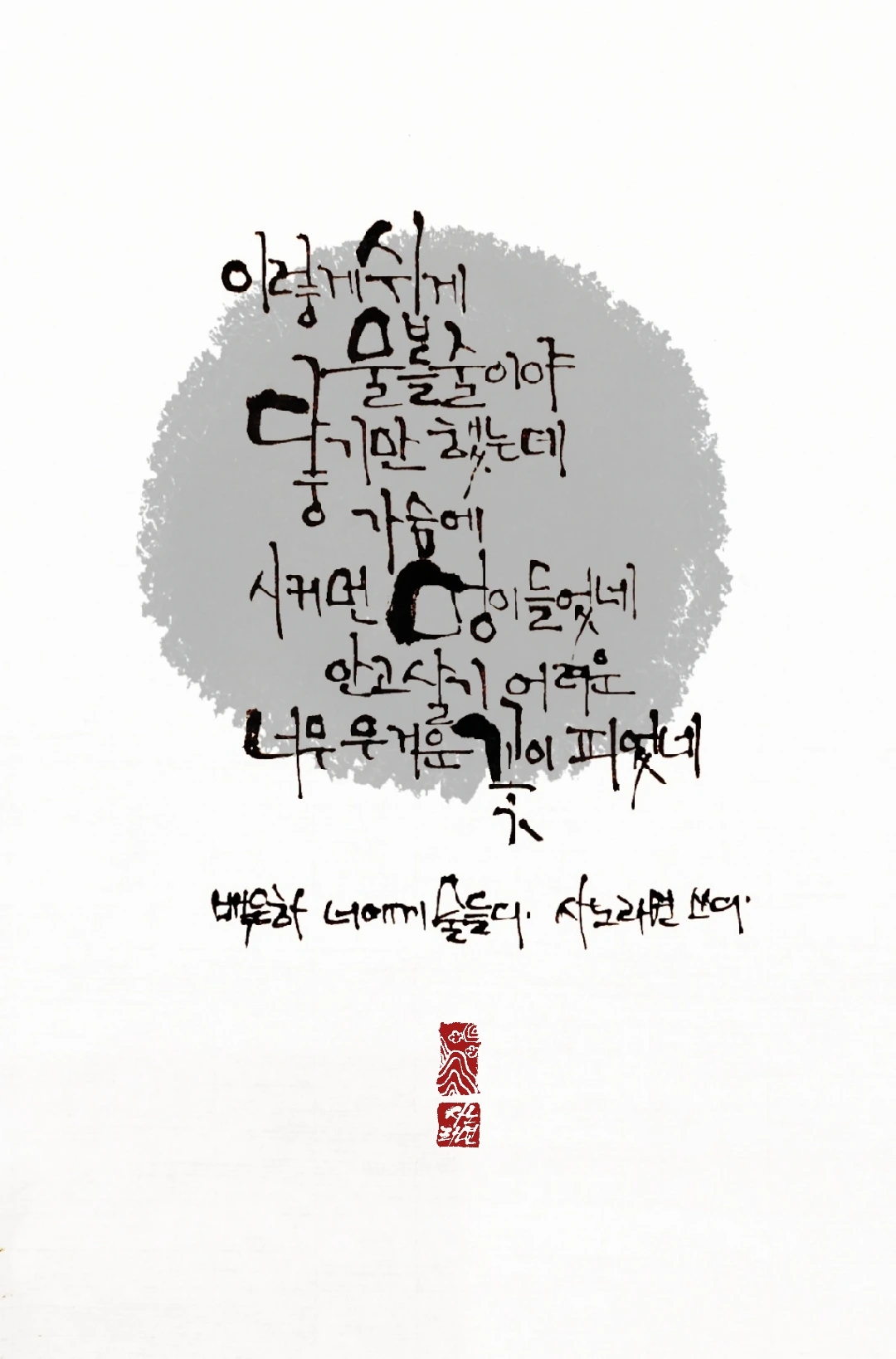 사노라면의 붓 끝에 시를 묻혀 캘리 한 조각