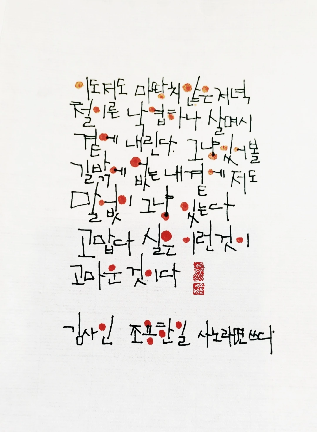 사노라면의 붓 끝에 시를 묻혀 캘리 한 조각