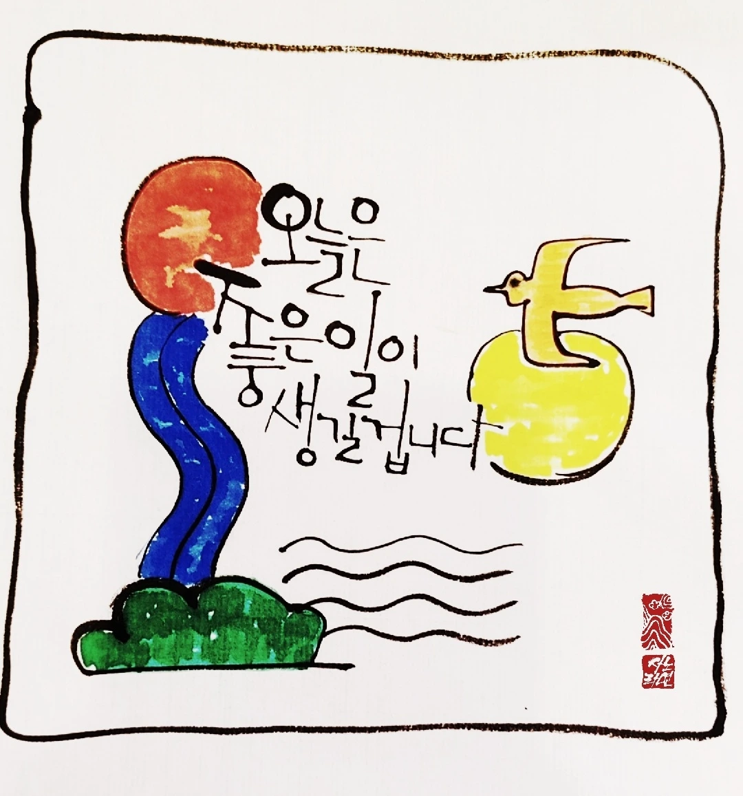 사노라면의 붓 끝에 시를 묻혀 캘리 한 조각