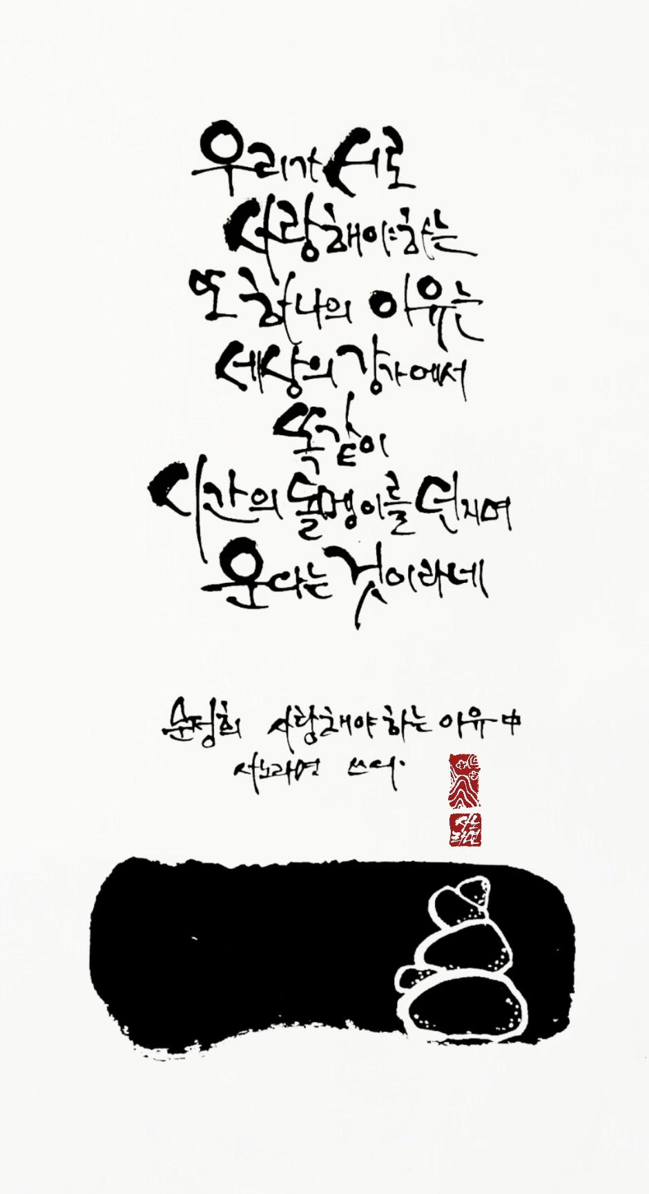 사노라면의 붓 끝에 시를 묻혀 캘리 한 조각