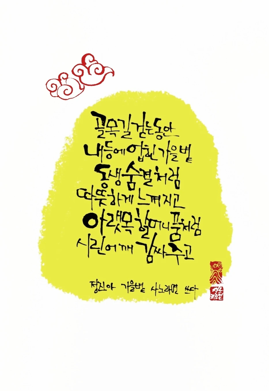 사노라면의 붓 끝에 시를 묻혀 캘리 한 조각