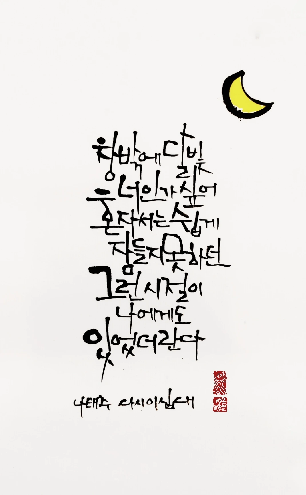 사노라면의 붓 끝에 시를 묻혀 캘리 한 조각
