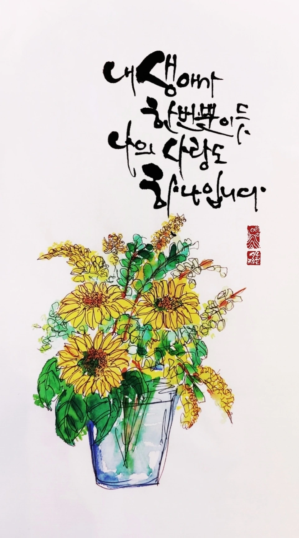 어설픈 그림이지만 어울리는 글은 역시 이해인 수녀님의 '해바라기 연가'입니다.