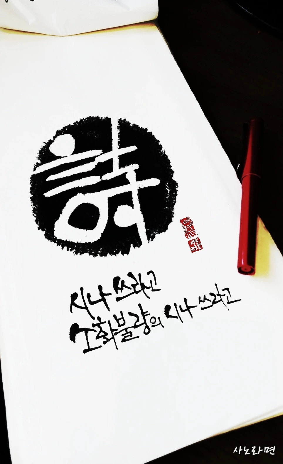 사노라면의 붓 끝에 시를 묻혀 캘리 한 조각