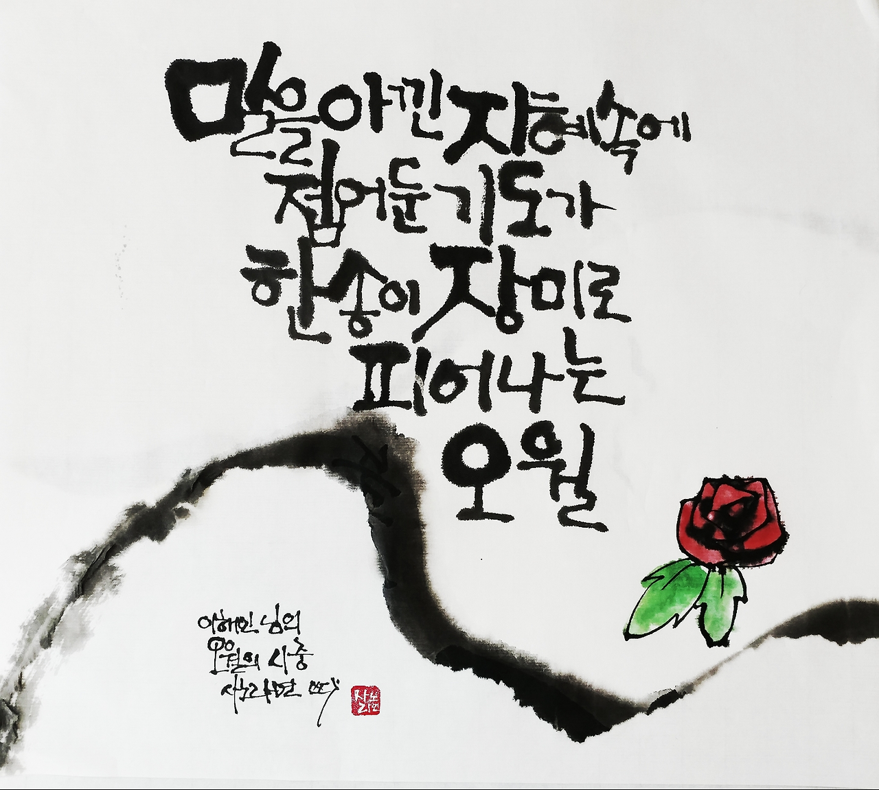 사노라면의 붓 끝에 시를 묻혀 캘리한조각