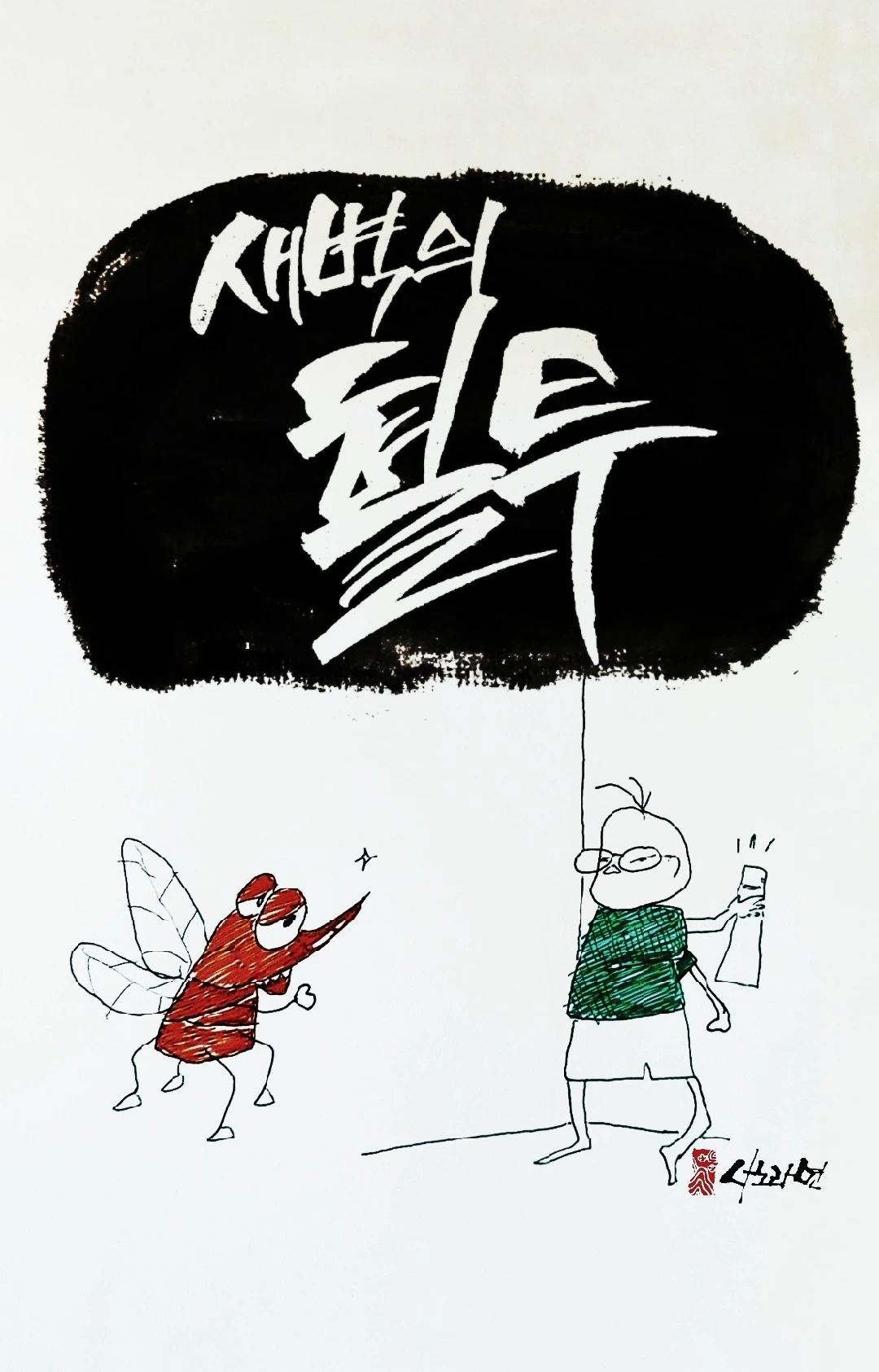 옥상에서 따라왔는지, 열린 창틈으로 들어왔는지, 뽀족한 침을 몰래 다듬은 채 나를 저격하려 밤새 기다리고 있었나 봅니다.