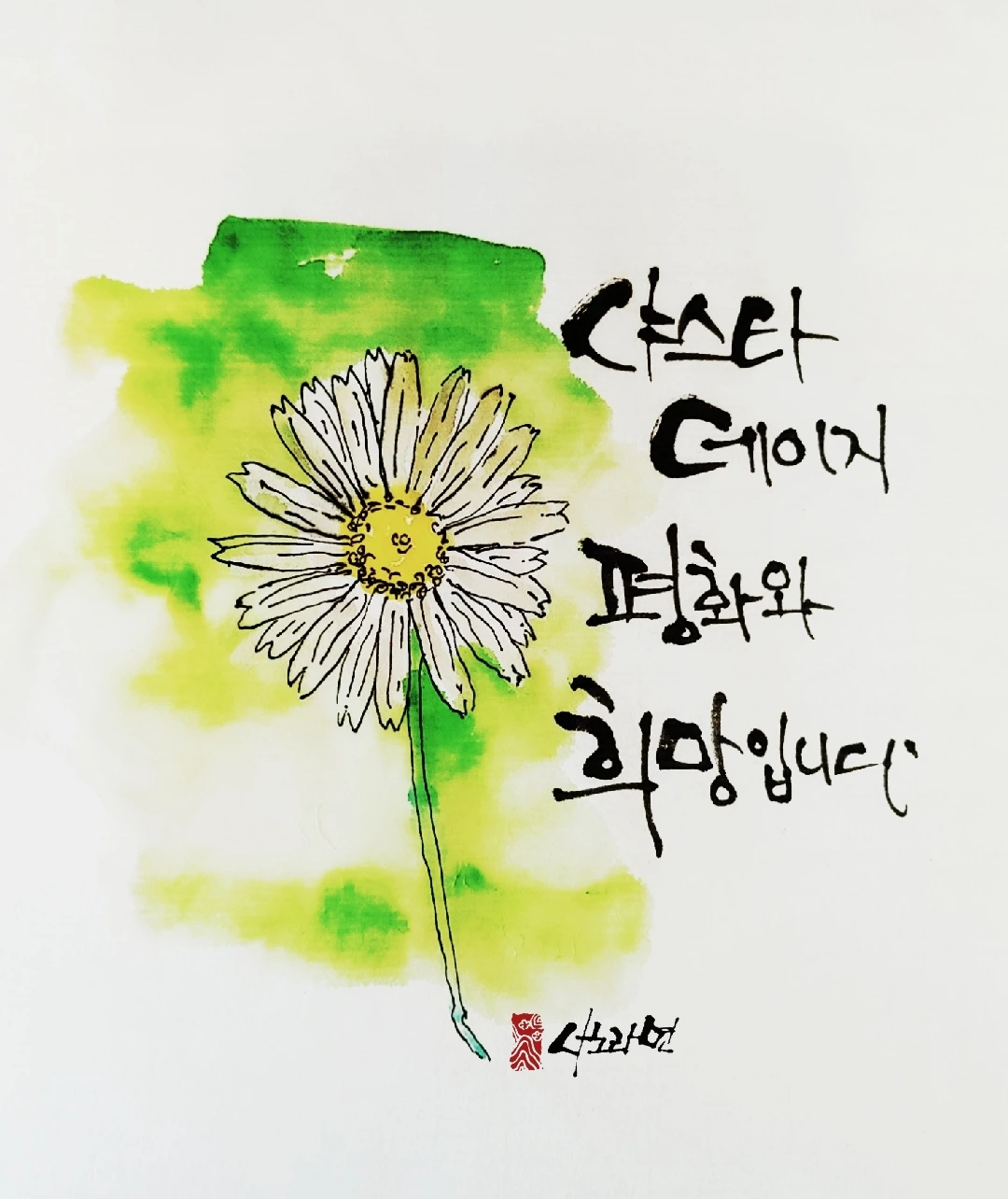 사노라면의 붓 끝에 시를 묻혀 캘리 한 조각