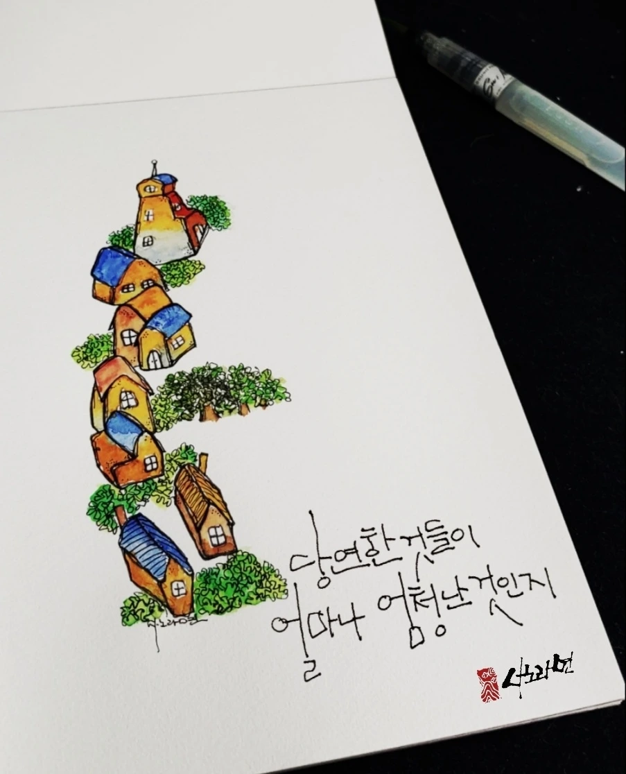 사노라면의 붓 끝에 시를 묻혀 캘리 한 조각